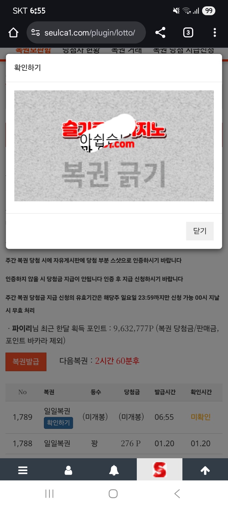복권 꽝만 ..ㅠㅠ 파이리 0 0 0 06:55:56 *기프티콘 바코드 노출 주의* <- 0 0 https://seulca1.com/bbs/board.php?bo_table=free&wr_id=3504294 Author 2 1 Lv.12 파이리 12 14,075,204 (21%) 파이리님 보유 포인트 : P 4,433 01.21 복권 꽝만 ..ㅠㅠ 01.20 u-23 일본vs한국 시작, 형난도 시작!! 01.20 오늘 마지막복권... 꽝 ㅠ +4 01.20 이모~ +13 01.20 복권 당첨금이!!!! 럭배네 ㅋㅋㅋ