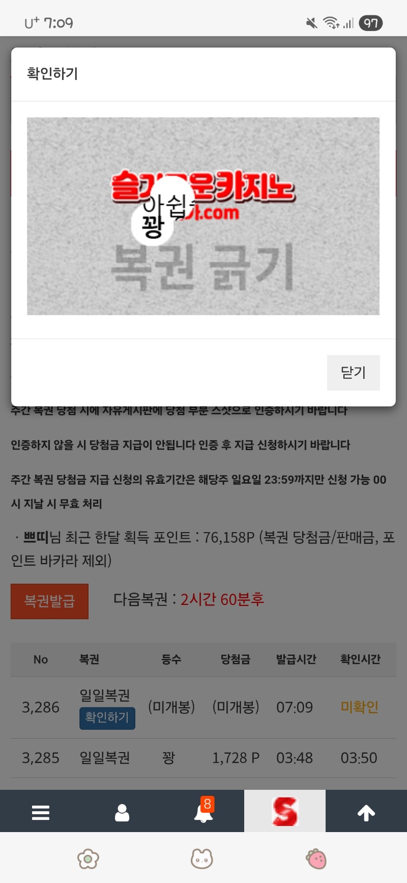 아침 복권 꽝 쁘띠 2 1 0 07:10:04 *기프티콘 바코드 노출 주의* <- 1 0 https://seulca1.com/bbs/board.php?bo_table=free&wr_id=3504314 Author 15 4 Lv.17 쁘띠 17 73,944,496 (13%) 쁘띠님 보유 포인트 : P 1,070,293 +2 01.21 아침 복권 꽝 01.21 쌍복 +1 01.21 출첵 +3 01.20 미형 사자승~~포인트 01.20 마지막.복권 꽝