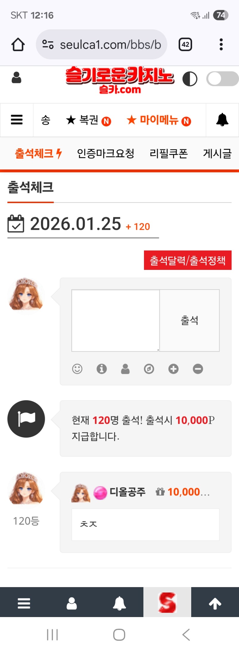 출첵합시다 디올공주 0 0 0 01.25 00:17 *기프티콘 바코드 노출 주의* <- 0 0 https://seulca1.com/bbs/board.php?bo_table=free&wr_id=3514453 Author 23 15 Lv.19 디올공주 19 193,019,953 (0%) 디올공주님 보유 포인트 : P 1,432,974 +1 03.04 이런3연패 땔챠 +1 03.04 연패 5대3패 +1 03.04 호카라 스타트 패 +16 03.04 오라메 123배*600냥 +14 03.04 뱀피190배*600냥
