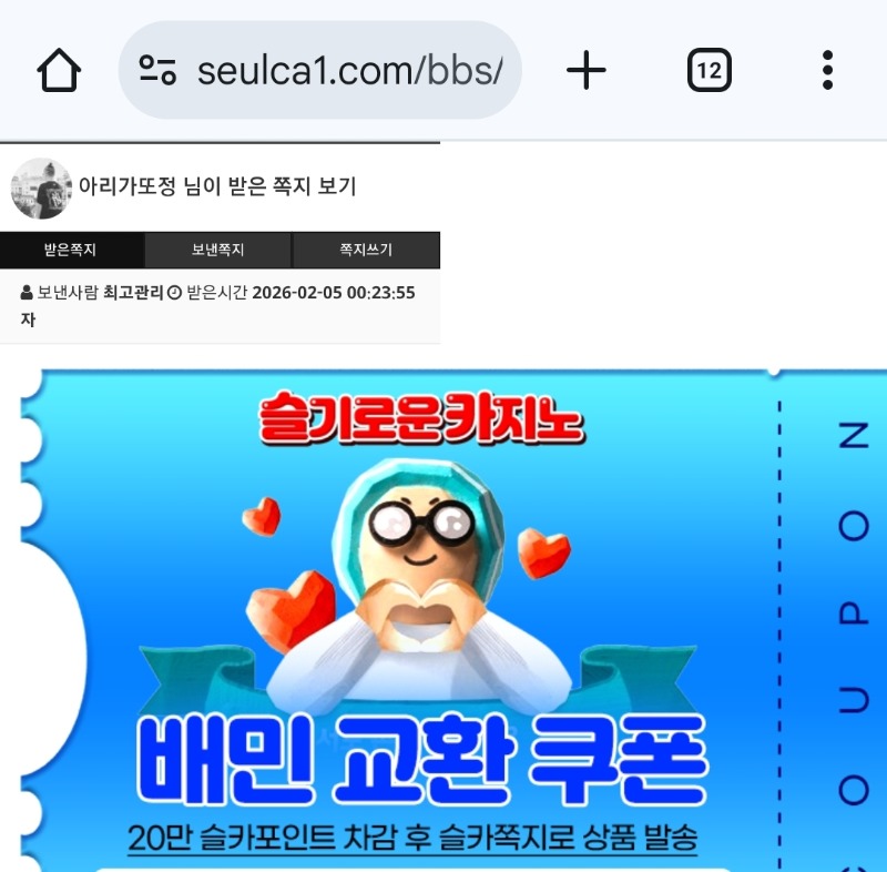 가족방배민감사합니다 아리가또정 0 0 0 02.05 00:27 *기프티콘 바코드 노출 주의* <- 잘사용하겟습니다 0 0 https://seulca1.com/bbs/board.php?bo_table=free&wr_id=3551144 Author 4 2 Lv.12 아리가또정 12 16,984,616 (79%) 아리가또정님 보유 포인트 : P 13,952,777 02.05 가족방배민감사합니다 +1 02.05 [비밀글] 배민교환합니다 +27 01.31 정근신청합니다 01.13 달이잘먹을께