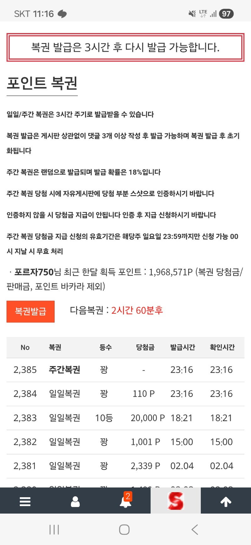 꽝... 포르자750 2 0 0 02.05 23:17 *기프티콘 바코드 노출 주의* <- 0 0 https://seulca1.com/bbs/board.php?bo_table=free&wr_id=3554740 Author 7 1 Lv.14 포르자750 14 28,390,179 (77%) 포르자750님 보유 포인트 : P 24,226 02.08 출석589 +2 02.05 꽝... +4 02.05 피자 잘먹을게요 +13 02.05 오241배 +35 02.05 문 바카라