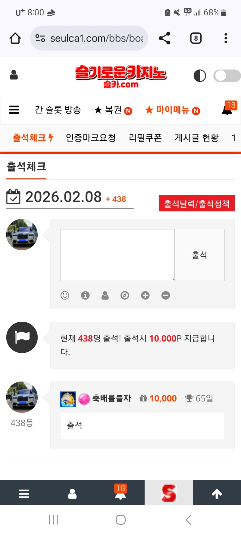 출석합니다 축배를들자 1 0 0 08:00:58 *기프티콘 바코드 노출 주의* <- 출석합니다 0 0 https://seulca1.com/bbs/board.php?bo_table=free&wr_id=3561346 Author 2 0 Lv.11 축배를들자 11 12,977,244 (99%) 축배를들자님 보유 포인트 : P 644,796 +1 02.08 굿모닝입니다 +12 02.08 제발 마감 가잣 플 2000천ㅅㅅㅅ네추럴9ㅅㅅㅅ +12 02.08 또 플 1000천 가잣ㅅㅅㅅ +13 02.08 느낌왔다 플 1500백 가잣ㅅㅅㅅ +1 02.08 출석합니다