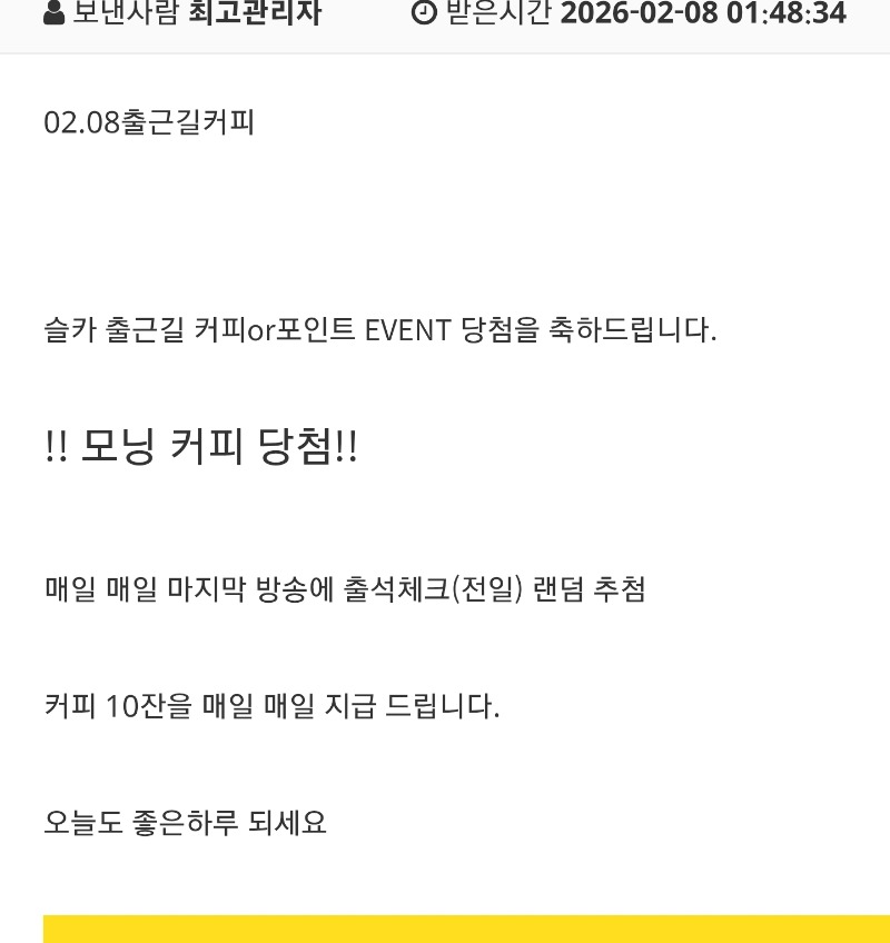 커피당첨~! 시티 22 0 0 08:56:19 *기프티콘 바코드 노출 주의* <- 감사합니다 0 0 https://seulca1.com/bbs/board.php?bo_table=free&wr_id=3561426 Author 0 0 Lv.16 시티 16 52,641,460 (13%) 시티님 보유 포인트 : P 247,295 +22 02.08 커피당첨~! 02.08 굿모닝입니다 02.08 출첵 +2 02.07 굿밤들되세요 +1 02.07 맛저들하세요