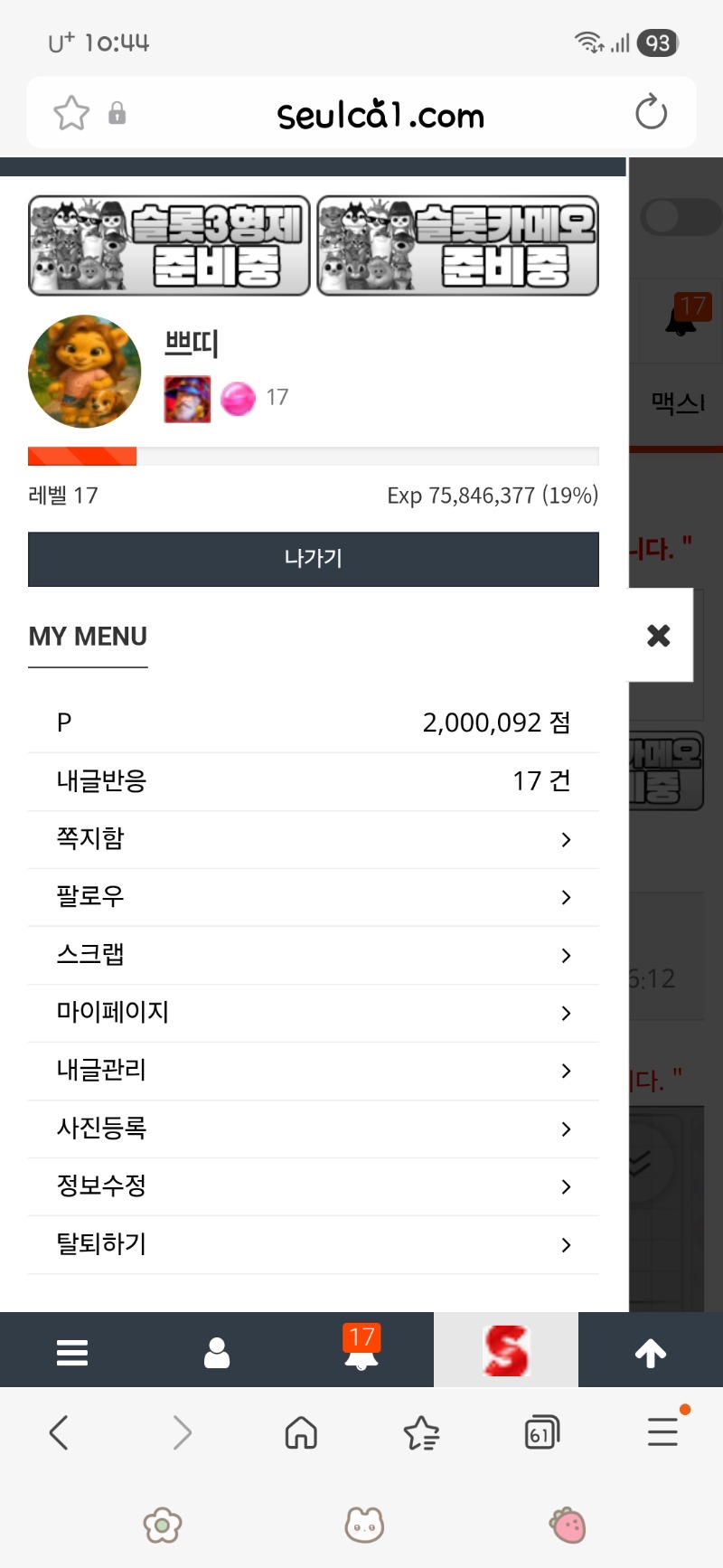 포교신청~~ 쁘띠 11 0 0 10:49:12 *기프티콘 바코드 노출 주의* <- 0 0 https://seulca1.com/bbs/board.php?bo_table=free&wr_id=3561600 Author 15 4 Lv.17 쁘띠 17 75,867,687 (19%) 쁘띠님 보유 포인트 : P 72,521 +1 02.08 배고프다~~ 02.08 이모~~~828282 +11 02.08 포교신청~~ +1 02.08 [비밀글] 포인트 교환 신청합니다 +6 02.08 이번주 참을라. 했는데~