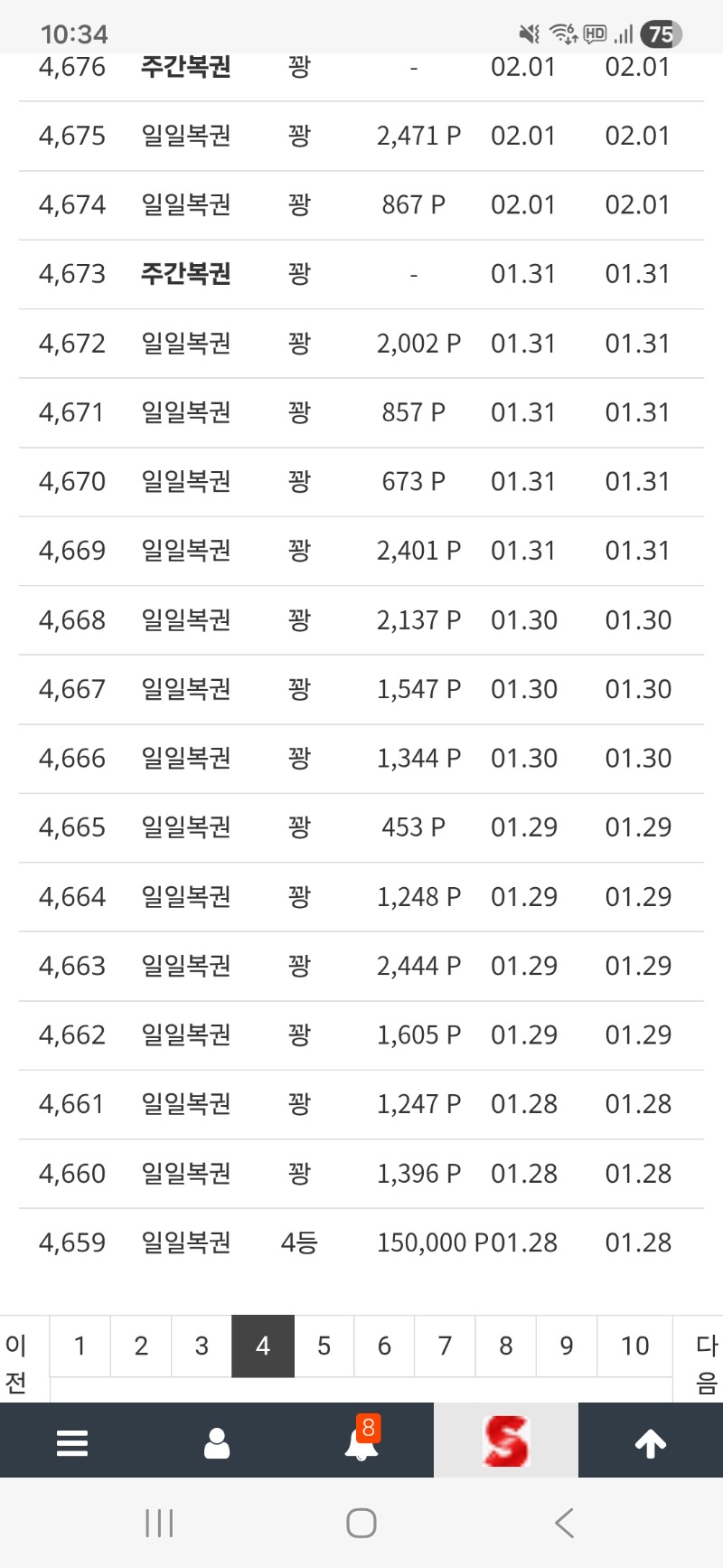 마지막 복권당첨 슬롯하고싶다 5 0 0 02.12 10:35 *기프티콘 바코드 노출 주의* <- 나헌테 왜그러지? 79번째꽝중요.... 15일째꽝중요... 0 0 https://seulca1.com/bbs/board.php?bo_table=free&wr_id=3575681 Author 5 1 Lv.16 슬롯하고싶다 16 53,220,901 (16%) 슬롯하고싶다님 보유 포인트 : P 8,430 +17 02.13 황금물조리개 리플 x +5 02.12 마지막 복권당첨 02.12 리필완료 +29 02.12 토라메 138배 +1 02.11 리필완료