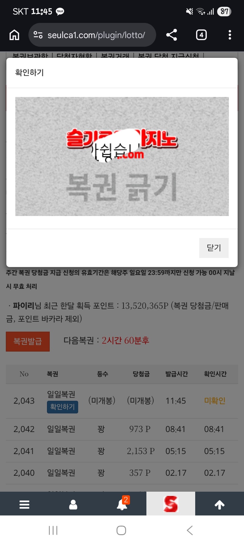점심복권꽝 ㅠ 파이리 6 0 0 02.18 11:46 *기프티콘 바코드 노출 주의* <- 0 0 https://seulca1.com/bbs/board.php?bo_table=free&wr_id=3595714 Author 2 1 Lv.12 파이리 12 17,433,215 (88%) 파이리님 보유 포인트 : P 12,085 +3 03.13 오라메 126배*1000 +5 03.13 황금조리개 148배*400 +12 03.13 락베가스 392배*1000 +10 03.13 오라메 124배*250 03.13 츨첵은하고~~