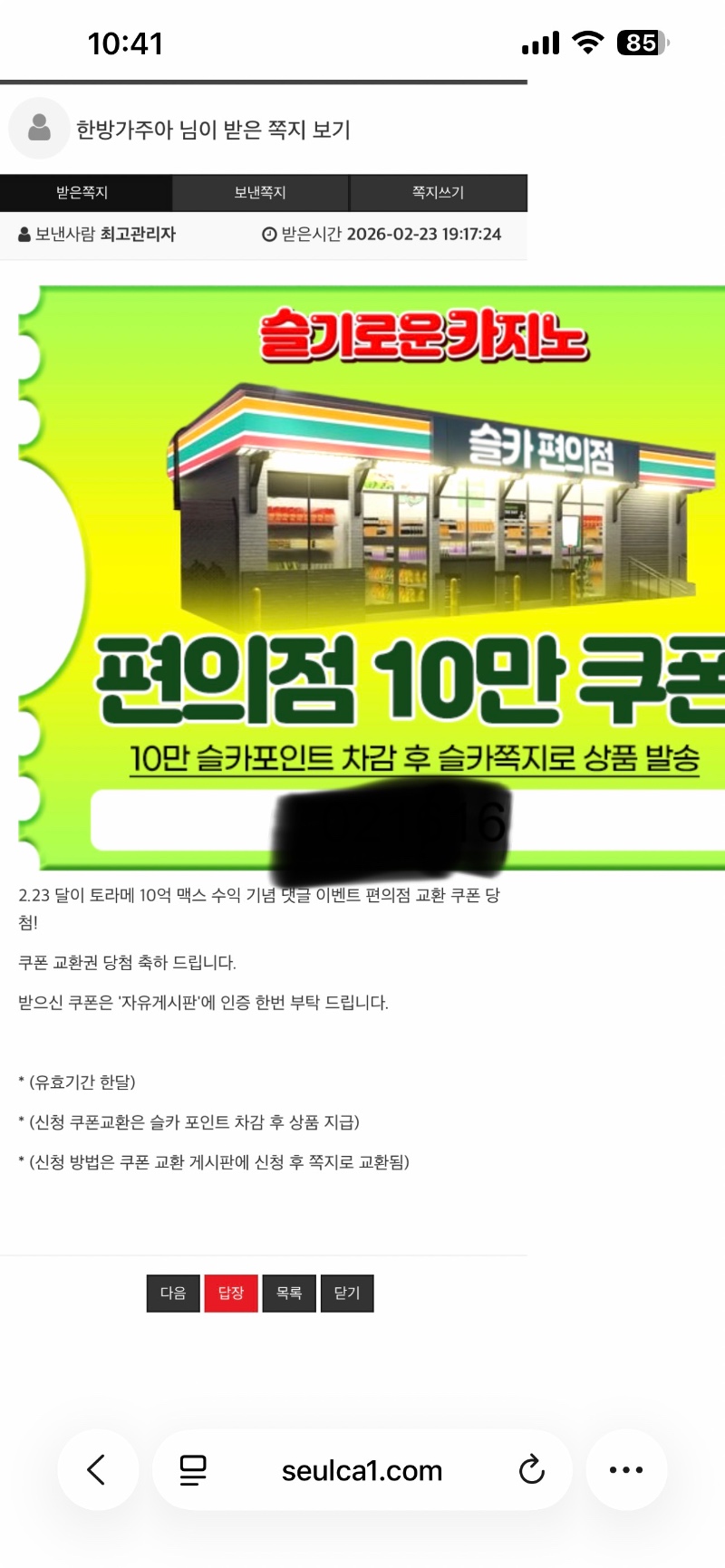 편의점 쿠폰 당첨!!!! > 자유게시판 | 온라인슬롯 1등 슬롯커뮤니티 - 슬카