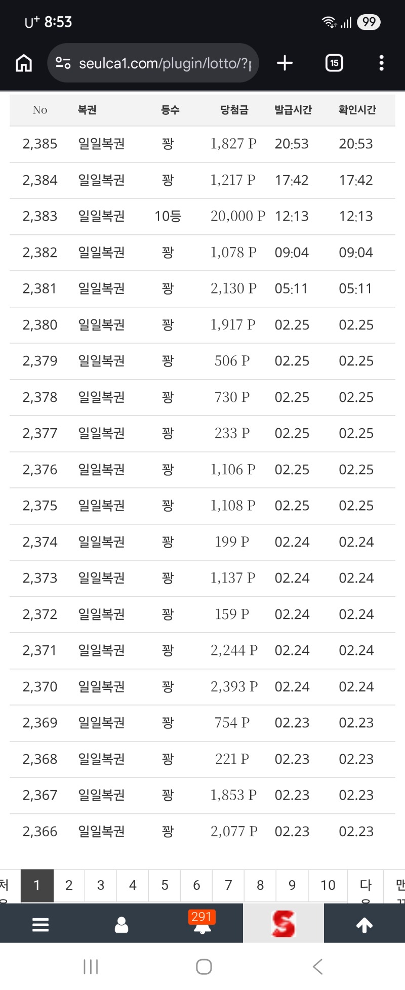 80꽝중10등... 두둥201 2 0 0 02.26 20:54 *기프티콘 바코드 노출 주의* <- 0 0 https://seulca1.com/bbs/board.php?bo_table=free&wr_id=3623703 Author 0 0 Lv.11 두둥201 11 11,161,056 (38%) 두둥201님 보유 포인트 : P 28,959 03.03 출석합니다 +20 02.28 만근이벤트 신청합니다 +2 02.26 80꽝중10등... +1 02.26 [비밀글] 쿠폰교환권신청합니다 02.23 점심 식사 맛있게 하세요