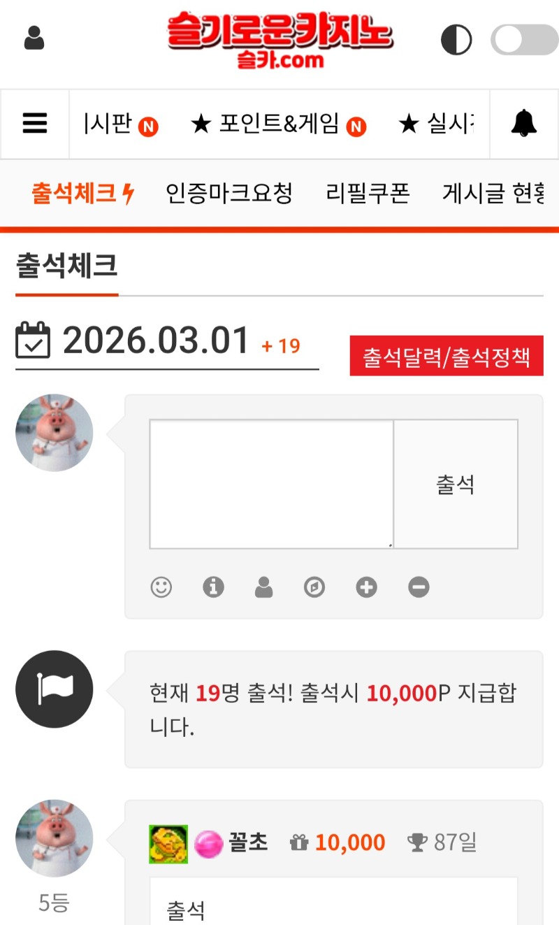 3월1일 출석완료 5등 꼴초 0 0 0 00:01:21 *기프티콘 바코드 노출 주의* <- 0 0 https://seulca1.com/bbs/board.php?bo_table=free&wr_id=3631133 Author 0 0 Lv.12 꼴초 12 16,939,364 (78%) 꼴초님 보유 포인트 : P 30,737 +4 03.01 포교완료 +1 03.01 [비밀글] 포인트교환신청요 +16 03.01 로또1번당첨 +3 03.01 일복꽝으로 하루를마감합니다 03.01 3월1일 출석완료 5등