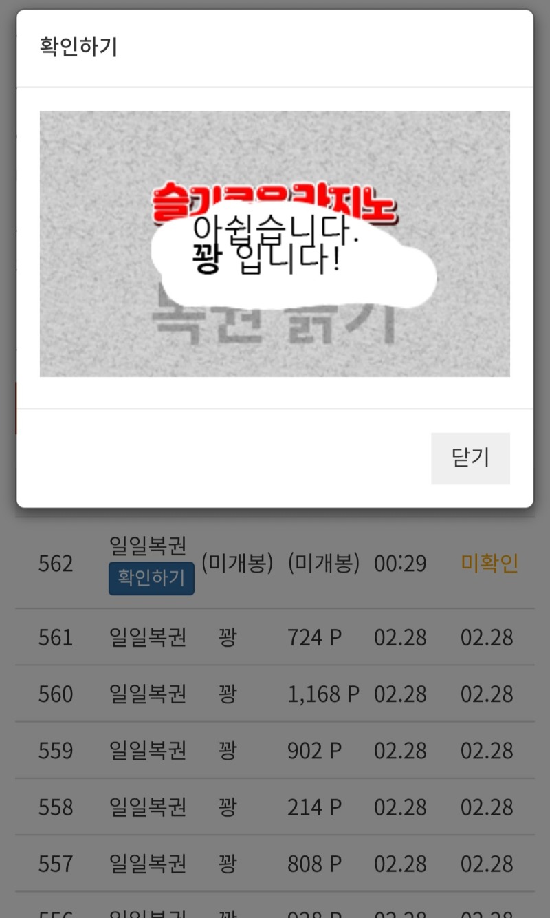 일복꽝으로 하루를마감합니다 꼴초 3 0 0 00:30:23 *기프티콘 바코드 노출 주의* <- 0 0 https://seulca1.com/bbs/board.php?bo_table=free&wr_id=3631289 Author 0 0 Lv.12 꼴초 12 16,939,364 (78%) 꼴초님 보유 포인트 : P 30,737 +4 03.01 포교완료 +1 03.01 [비밀글] 포인트교환신청요 +16 03.01 로또1번당첨 +3 03.01 일복꽝으로 하루를마감합니다 03.01 3월1일 출석완료 5등