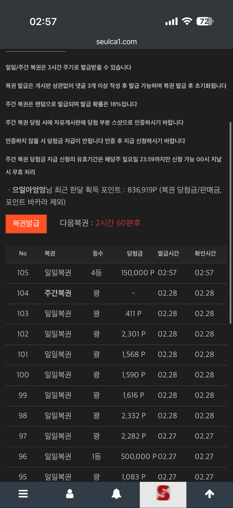 일복 4 등 ~~ 으얼아엉엉 18 0 0 02:58:19 *기프티콘 바코드 노출 주의* <- 엊그제는 1 등 오늘은 4 등 고마워유 0 0 https://seulca1.com/bbs/board.php?bo_table=free&wr_id=3631548 Author 0 0 Lv.5 으얼아엉엉 5 674,340 (45%) 으얼아엉엉님 보유 포인트 : P 416,832 +2 03.01 입금액 이상 올라가질 못 하네 +2 03.01 눈 뜨자마자 영시 +3 03.01 레벨업 빡시네 +18 03.01 일복 4 등 ~~ +5 03.01 일요일 잘 보내세요