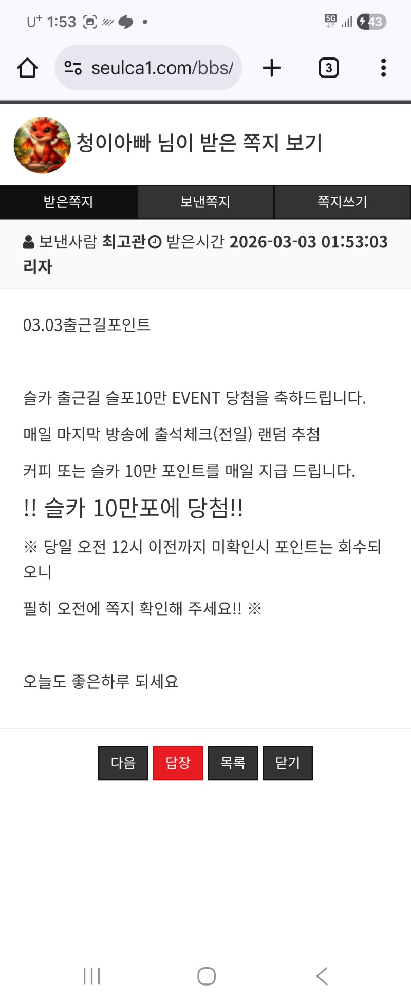 출근길 슬포 10만포 감사합니다^^ 청이아빠 6 1 0 01:54:40 *기프티콘 바코드 노출 주의* <- 잘쓸께요 1 0 https://seulca1.com/bbs/board.php?bo_table=free&wr_id=3638905 Author 0 0 Lv.14 청이아빠 14 29,414,169 (91%) 청이아빠님 보유 포인트 : P 2,843,040 +13 03.03 오라메 148배 +15 03.03 오배 오라메 148배 +6 03.03 출근길 슬포 10만포 감사합니다^^ +7 03.03 이번엔 9로 패패 +6 03.03 바카라 9로 승