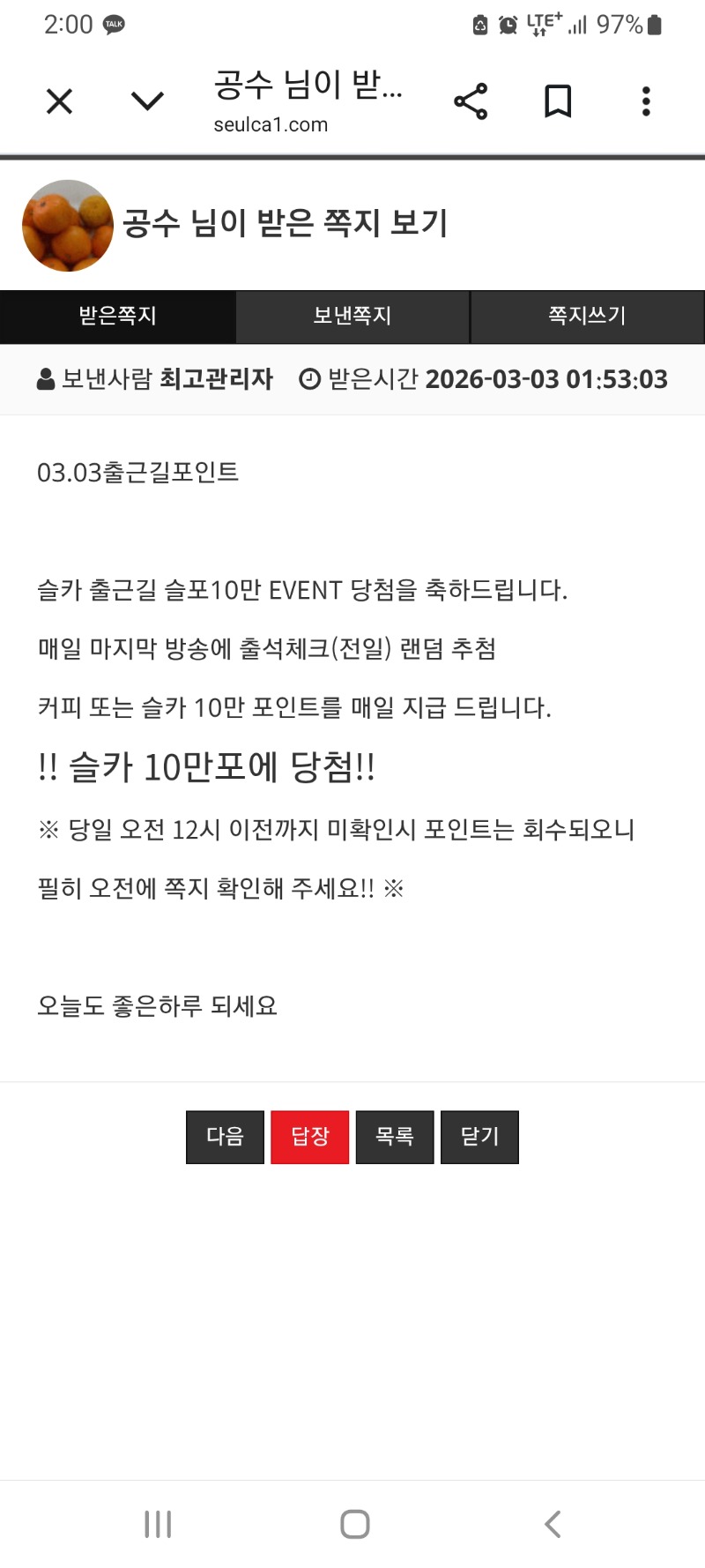 슬포 당첨 ㅋ 공수 12 0 0 02:01:09 *기프티콘 바코드 노출 주의* <- 감사합니다 0 0 https://seulca1.com/bbs/board.php?bo_table=free&wr_id=3638931 Author 3 0 Lv.12 공수 12 14,701,002 (34%) 공수님 보유 포인트 : P 61,581 +3 03.03 슬용호 없이 포인트 획득이 가능한것인가? +3 03.03 밤새고 출근합니다. 03.03 용호 힘드네 +12 03.03 슬포 당첨 ㅋ +1 03.02 역시 시드가없음.. 안되네