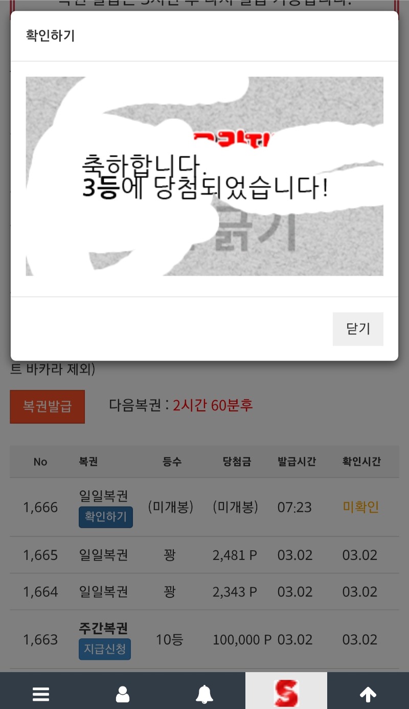 일복 3등 당첨 축하드립니다