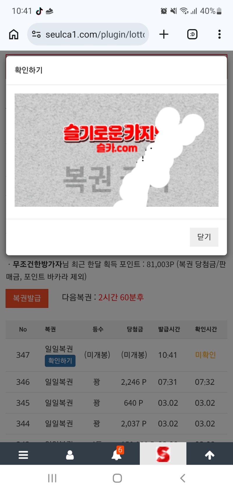 주복은 언제쯤 줄꺼니.. 무조건한방가자 3 0 0 10:42:33 *기프티콘 바코드 노출 주의* <- 주라..주라.. 0 0 https://seulca1.com/bbs/board.php?bo_table=free&wr_id=3639736 Author 0 0 Lv.7 무조건한방가자 7 2,842,886 (84%) 무조건한방가자님 보유 포인트 : P 6,482 +3 03.03 주복은 언제쯤 줄꺼니.. +16 03.03 아..어제 우루스에서..900개 날려묵고.. +5 03.03 아침첫복권.. 03.03 다들출석하자구요~~ +2 03.02 금일 마지막복권..