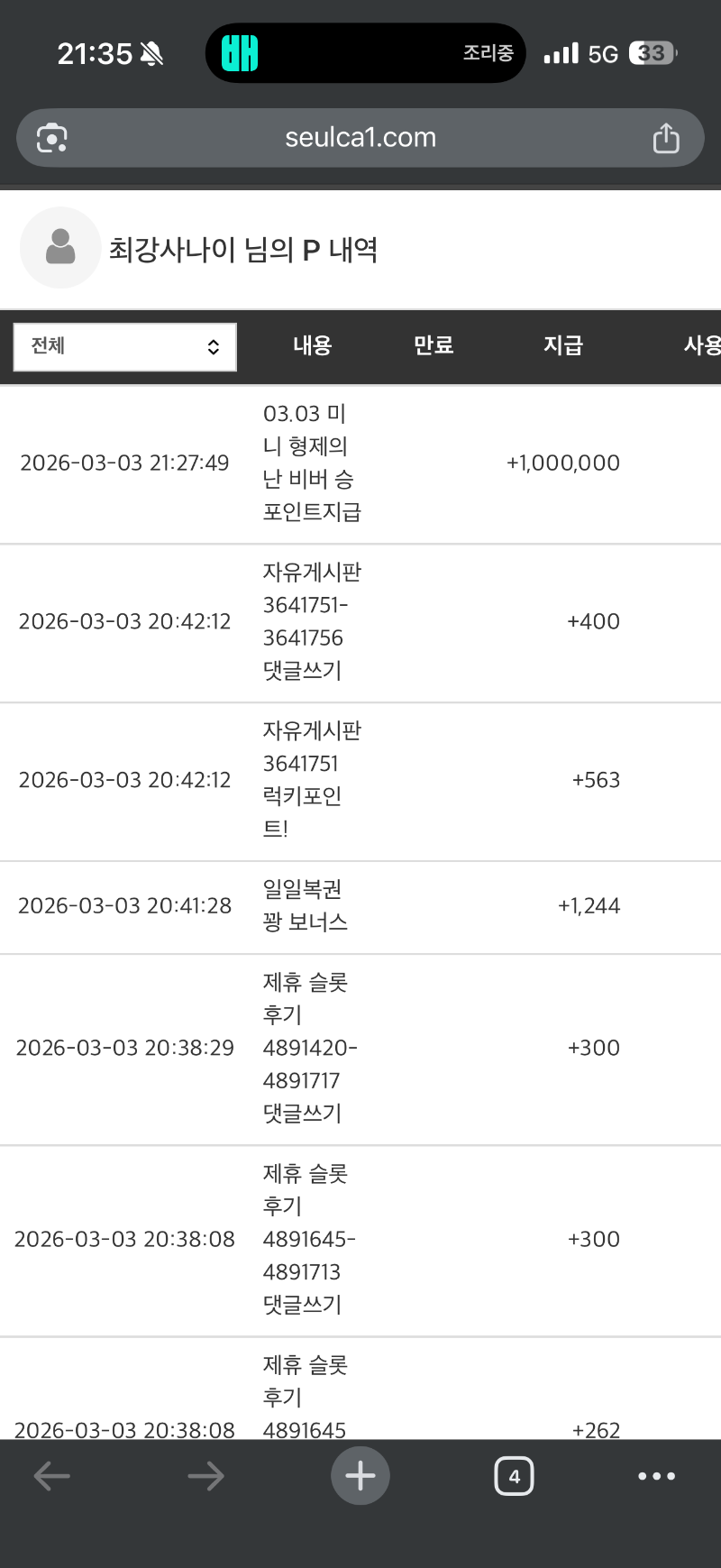 미니형난 적중포인트 들어왔네요 최강사나이 4 0 0 03.03 21:36 *기프티콘 바코드 노출 주의* <- 밀감아 고마워 0 0 https://seulca1.com/bbs/board.php?bo_table=free&wr_id=3641871 Author 0 0 Lv.7 최강사나이 7 2,150,289 (15%) 최강사나이님 보유 포인트 : P 2,375,691 +25 03.04 블던 4613 +11 03.04 블던 2341 +11 03.04 오전겜 개망... +2 03.04 굿모닝입니다 +19 03.04 새벽겜 스타트