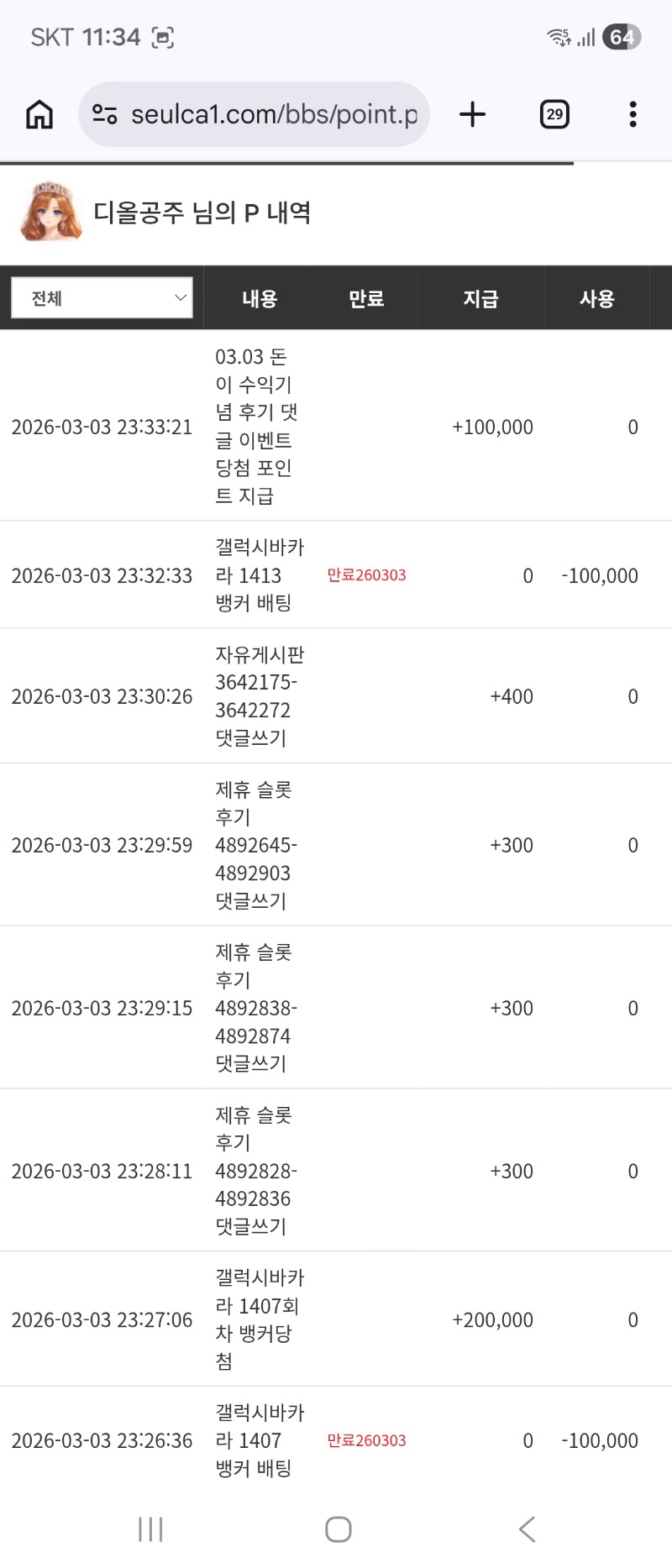 돈님 수익기념 포인트 ㅅㅅ 디올공주 4 0 0 03.03 23:35 *기프티콘 바코드 노출 주의* <- 0 0 https://seulca1.com/bbs/board.php?bo_table=free&wr_id=3642283 Author 23 15 Lv.19 디올공주 19 192,908,235 (0%) 디올공주님 보유 포인트 : P 1,247,430 +5 03.04 슈천 953배*600냥 +4 03.04 토르253배 +16 03.04 토라메 130배*600냥 03.04 굿모닝입니다 03.04 출첵합시다