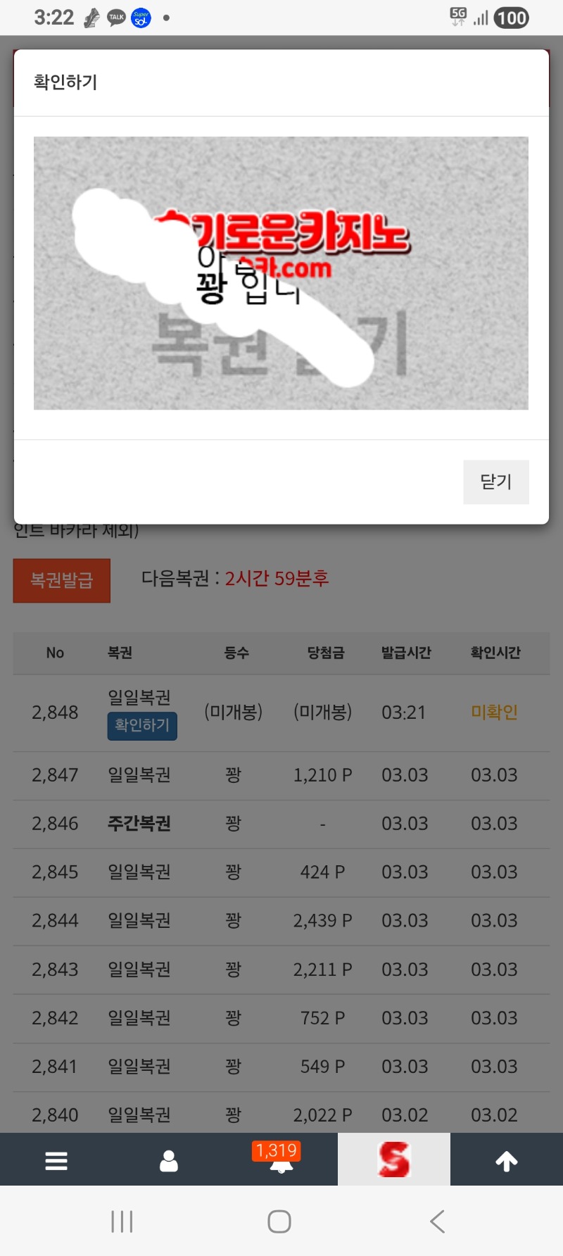 모닝복권 북쟁이리 0 0 0 03:34:31 기프티콘 바코드 노출 주의* <- 꽝.ㅠ 0 0 https://seulca1.com/bbs/board.php?bo_table=free&wr_id=3642801 Author 4 3 Lv.14 북쟁이리 14 28,211,482 (74%) 북쟁이리님 보유 포인트 : P 7,446 03.04 맛점하세요 +2 03.04 출근중. +1 03.04 굿모닝입니다. 03.04 출첵 03.04 모닝복권
