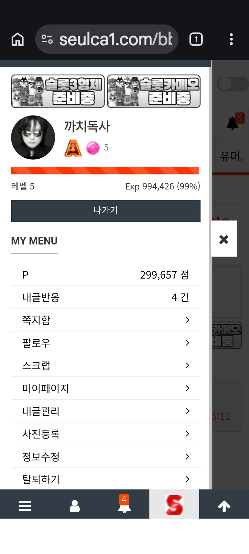 레벨 업 고고고 까치독사 5 0 0 10:58:41 *기프티콘 바코드 노출 주의* <- 나도 이제 영어 아니고 그림레벨 ㅎㅎㅎ 손꾸락 아프다 ㅋ 0 0 https://seulca1.com/bbs/board.php?bo_table=free&wr_id=3643364 Author 1 0 Lv.6 까치독사 6 1,014,023 (1%) 까치독사님 보유 포인트 : P 22,373 03.04 쌍복이.. 결과는???? +4 03.04 포인트 없어서 리필도 받아보네요 ㅠㅠ +4 03.04 드디어 6레벨 ㅅㅅㅅㅅ +6 03.04 쌍복이 등장 ㅎㅎㅎ +5 03.04 레벨 업 고고고