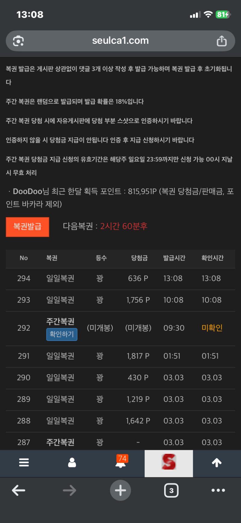 주복 2개구매.. DooDoo 1 0 0 13:10:32 *기프티콘 바코드 노출 주의* <- 결과는..?..역시나 "꽝!!" 0 0 https://seulca1.com/bbs/board.php?bo_table=free&wr_id=3643719 Author 0 0 Lv.9 DooDoo 9 4,469,791 (11%) DooDoo님 보유 포인트 : P 5,152,751 +5 03.04 바카라3연승 +5 03.04 바카라2연승 +5 03.04 바카라1연승 +1 03.04 주복 2개구매.. 03.03 미니형난 가자!!