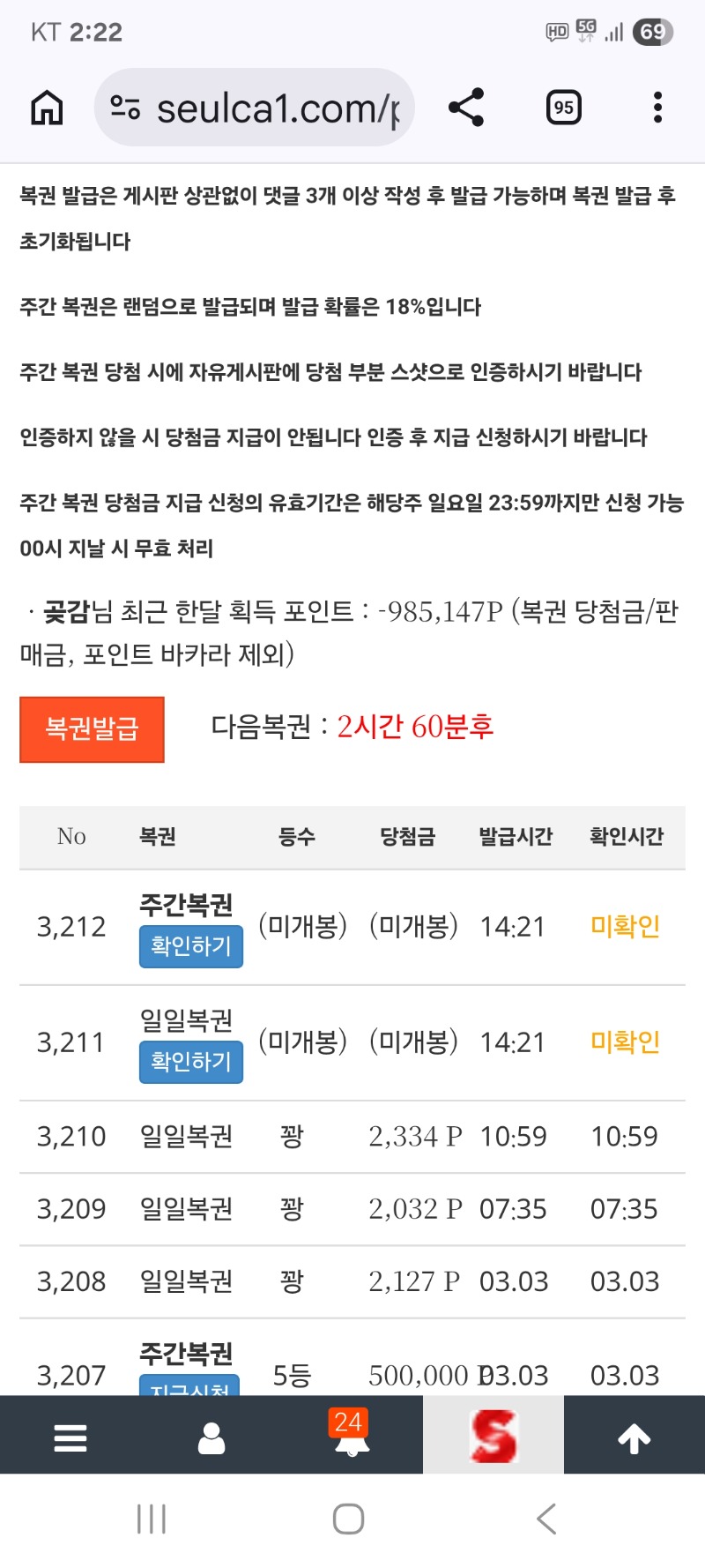 쌍복 왔는데 조금있다가 확인 합니다 곶감 4 0 0 14:23:49 http://당첨 기원합니다 + 1 *기프티콘 바코드 노출 주의* <- 0 0 https://seulca1.com/bbs/board.php?bo_table=free&wr_id=3643868 Author 6 3 Lv.18 곶감 18 137,423,663 (62%) 곶감님 보유 포인트 : P 3,751,113 03.04 이번에는 두개다 꽝 이네요 (일복 당첨 좀주세요) +4 03.04 쌍복 왔는데 조금있다가 확인 합니다 +10 03.04 커담 갑니다 +1 03.04 식후커담 갑니다 +1 03.04 맛점하세요