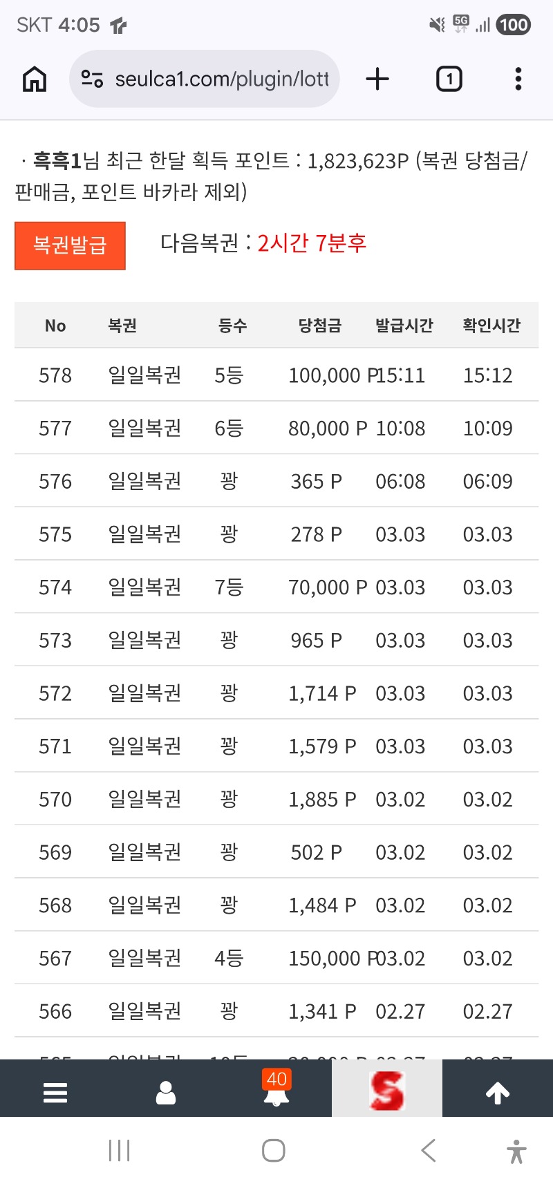 주복은 안들어오고 일복만 오지만... 흑흑1 2 0 0 16:07:58 *기프티콘 바코드 노출 주의* <- 이번주 일복 당첨이 미쳐서 뭐라 할말이 없습니다 그래도 인간적으로 주복 일주일에 하나는 줘야지ㅠ 0 0 https://seulca1.com/bbs/board.php?bo_table=free&wr_id=3644116 Author 0 0 Lv.8 흑흑1 8 3,053,039 (5%) 흑흑1님 보유 포인트 : P 5,200,520 +2 03.04 주복은 안들어오고 일복만 오지만... +1 03.02 주복이는 안와도 일복이가 하나주네요 +17 02.28 만근 신청합니다 +4 02.25 형난 이벤 치킨당첨 +6 02.23 최바비 쿱 당첨 됐네요