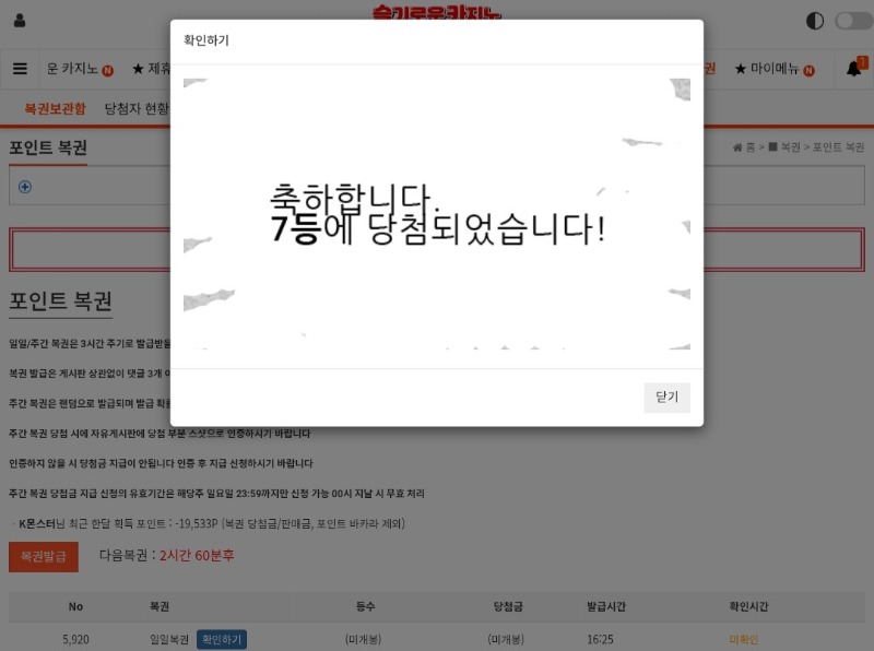 일복 7등 당첨 축하드립니다