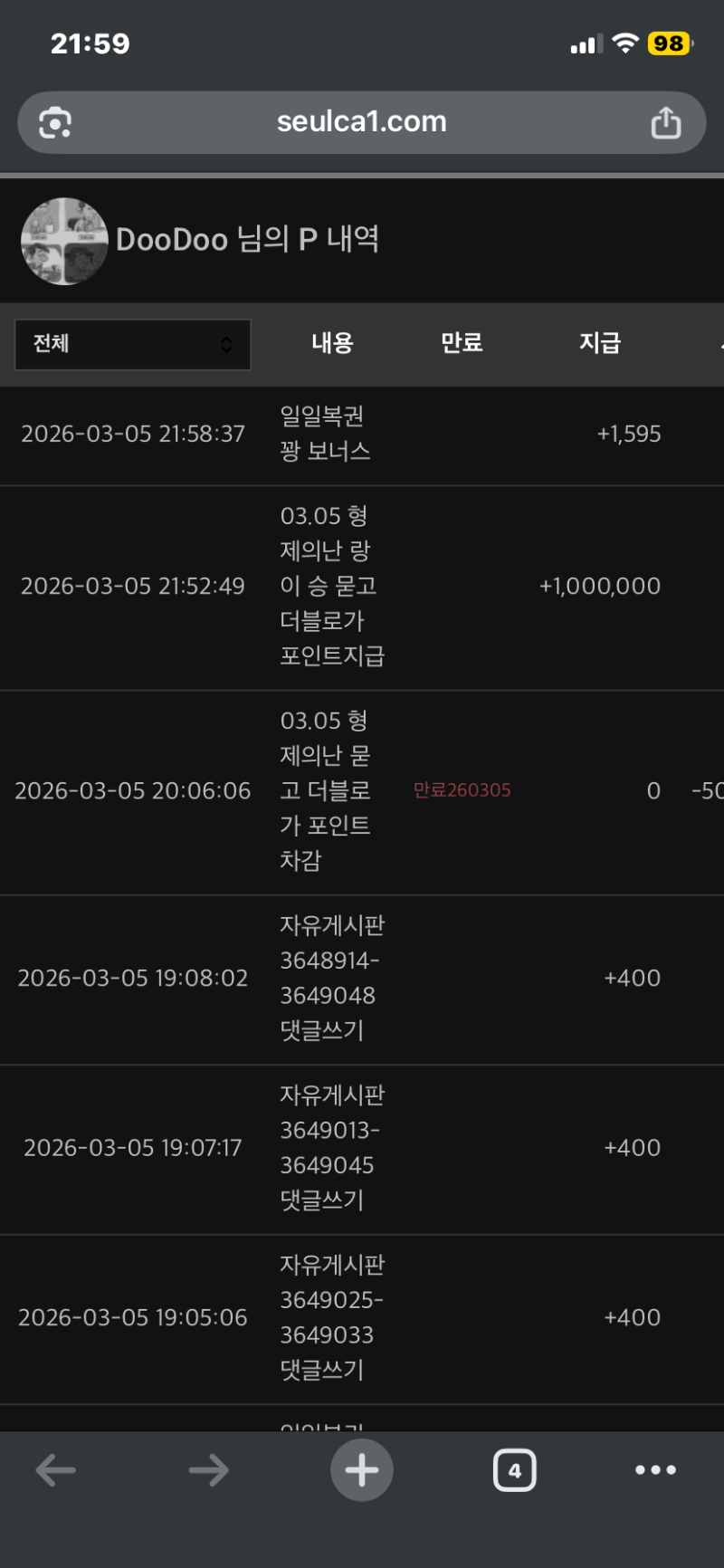 고양이과 중 최고는 역시 랑이인가!! DooDoo 0 0 0 03.05 22:00 *기프티콘 바코드 노출 주의* <- 0 0 https://seulca1.com/bbs/board.php?bo_table=free&wr_id=3649458 Author 0 0 Lv.9 DooDoo 9 4,612,430 (15%) DooDoo님 보유 포인트 : P 3,698,532 +8 03.07 주복 10등 당첨 03.07 [비밀글] 주복 당첨 신청 +1 03.06 [비밀글] 포교신청 +3 03.05 시안 형난 행운번호 당첨 편쿱 감사 03.05 고양이과 중 최고는 역시 랑이인가!!