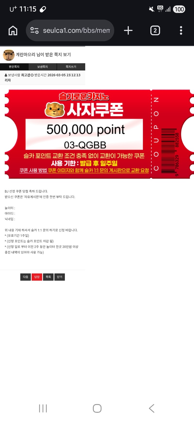 우리 사자의 쓰윽♡ 계란마으리 7 0 0 03.05 23:22 *기프티콘 바코드 노출 주의* <- 곰아와 사자양 ♡ 오늘 졋지만 ㅋㅋㅋ못먹어도 고다 !!!! 다음에는 이겨블자~~ 0 0 https://seulca1.com/bbs/board.php?bo_table=free&wr_id=3649812 Author 12 6 Lv.15 계란마으리 15 38,377,942 (41%) 계란마으리님 보유 포인트 : P 13,059,669 +8 04.15 비버오빠 추겜 수익 ㅅ ㅅ +26 04.15 우리 지니언뉘'3'~생일축하해영 04.15 연애전후.. 04.15 친구랑.. 04.15 주토피아 흥행으로