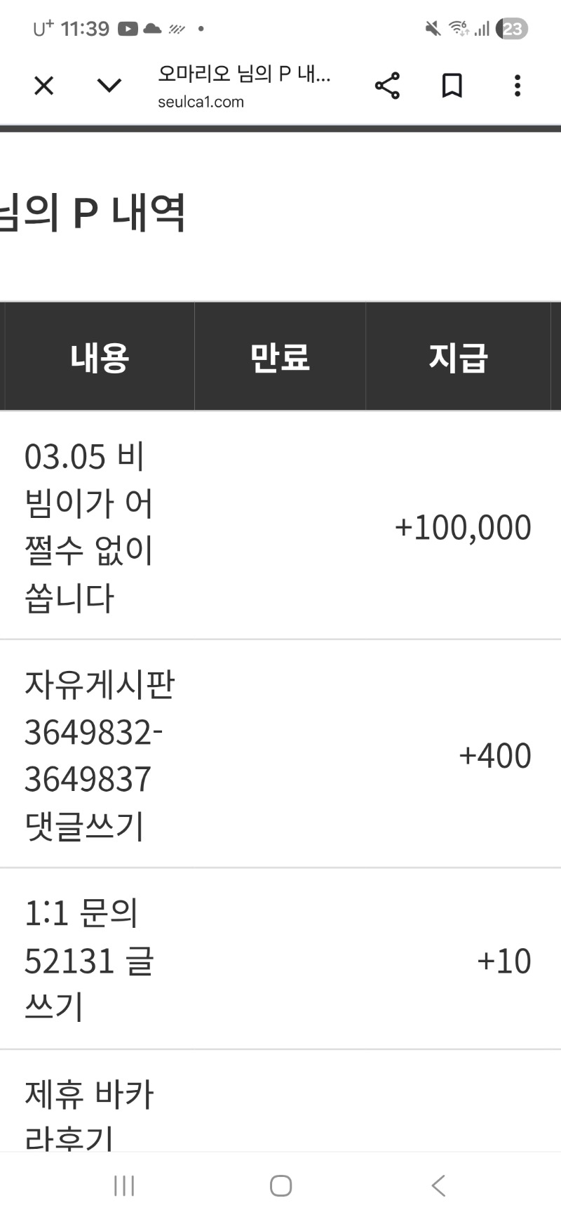 비버야~~고마워 오마리오 1 0 0 03.05 23:39 *기프티콘 바코드 노출 주의* <- ㅎㅎ 잘쓸께~~ 0 0 https://seulca1.com/bbs/board.php?bo_table=free&wr_id=3649890 Author 4 0 Lv.16 오마리오 16 62,054,314 (60%) 오마리오님 보유 포인트 : P 1,735 +16 03.07 복권 100연꽝 선물 +2 03.07 출석 ~~ 03.06 [비밀글] 포교~~~~ +1 03.05 비버야~~고마워 +2 03.05 달이 추천게임 당첨~~슬포