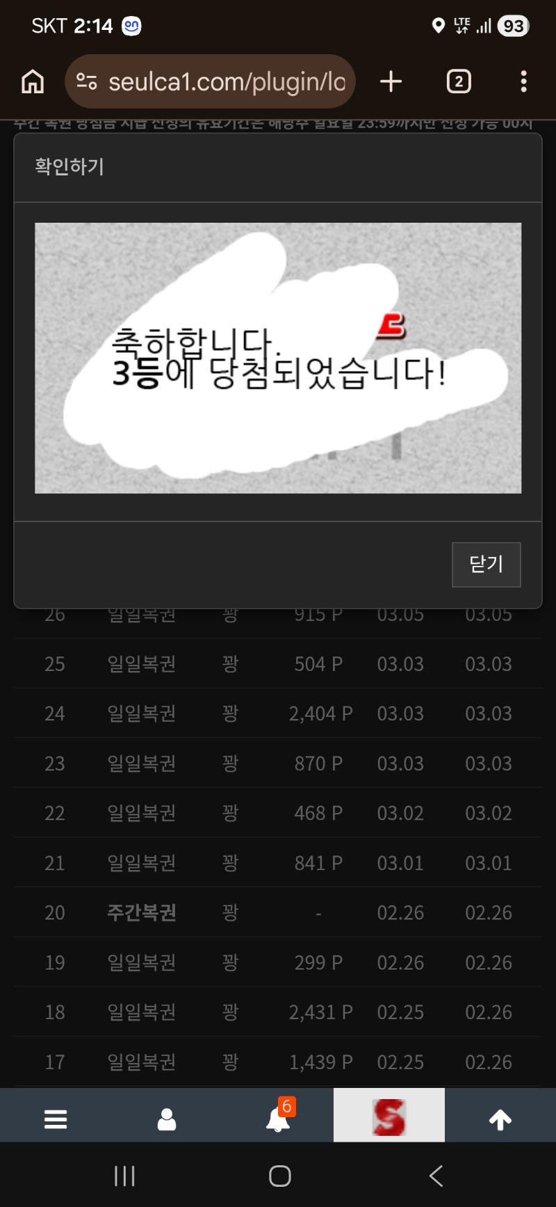 드뎌 3등 막먹어 10 0 0 03.06 14:16 *기프티콘 바코드 노출 주의* <- 0 0 https://seulca1.com/bbs/board.php?bo_table=free&wr_id=3651798 Author 0 0 Lv.5 막먹어 5 596,145 (32%) 막먹어님 보유 포인트 : P 502,700 +15 03.09 주복당첨 +10 03.06 드뎌 3등 +18 03.01 만근신청 +1 02.22 [비밀글] 시안/짜몽아빠 +3 02.14 참여