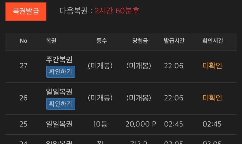 주간복권 당첨 ㅎ 태구 1 0 0 03.06 22:08 *기프티콘 바코드 노출 주의* <- 과연 결과는 어떨까유? 0 0 https://seulca1.com/bbs/board.php?bo_table=free&wr_id=3653221 Author 0 0 Lv.4 태구 4 172,647 (24%) 태구님 보유 포인트 : P 924,950 +14 03.07 토라메 356배 +16 03.07 오라메 368배 +1 03.06 주간복권 당첨 ㅎ +6 03.04 미니형난 비버형 맞췄는데 치킨까지 ㅎ +11 03.03 버메가 바닥진입 413배