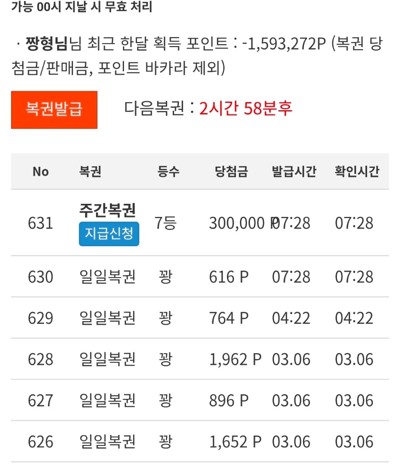 주복 7등 !!! 짱형님 13 1 0 07:31:20 *기프티콘 바코드 노출 주의* <- 1 0 https://seulca1.com/bbs/board.php?bo_table=free&wr_id=3654352 Author 0 0 Lv.9 짱형님 9 5,707,763 (42%) 짱형님님 보유 포인트 : P 0 03.07 [비밀글] 주복7등당첨 +13 03.07 주복 7등 !!! 03.07 [비밀글] 포교신청합니다 03.07 출첵 !! +2 03.06 아,, 비버 수익 댓글이벤