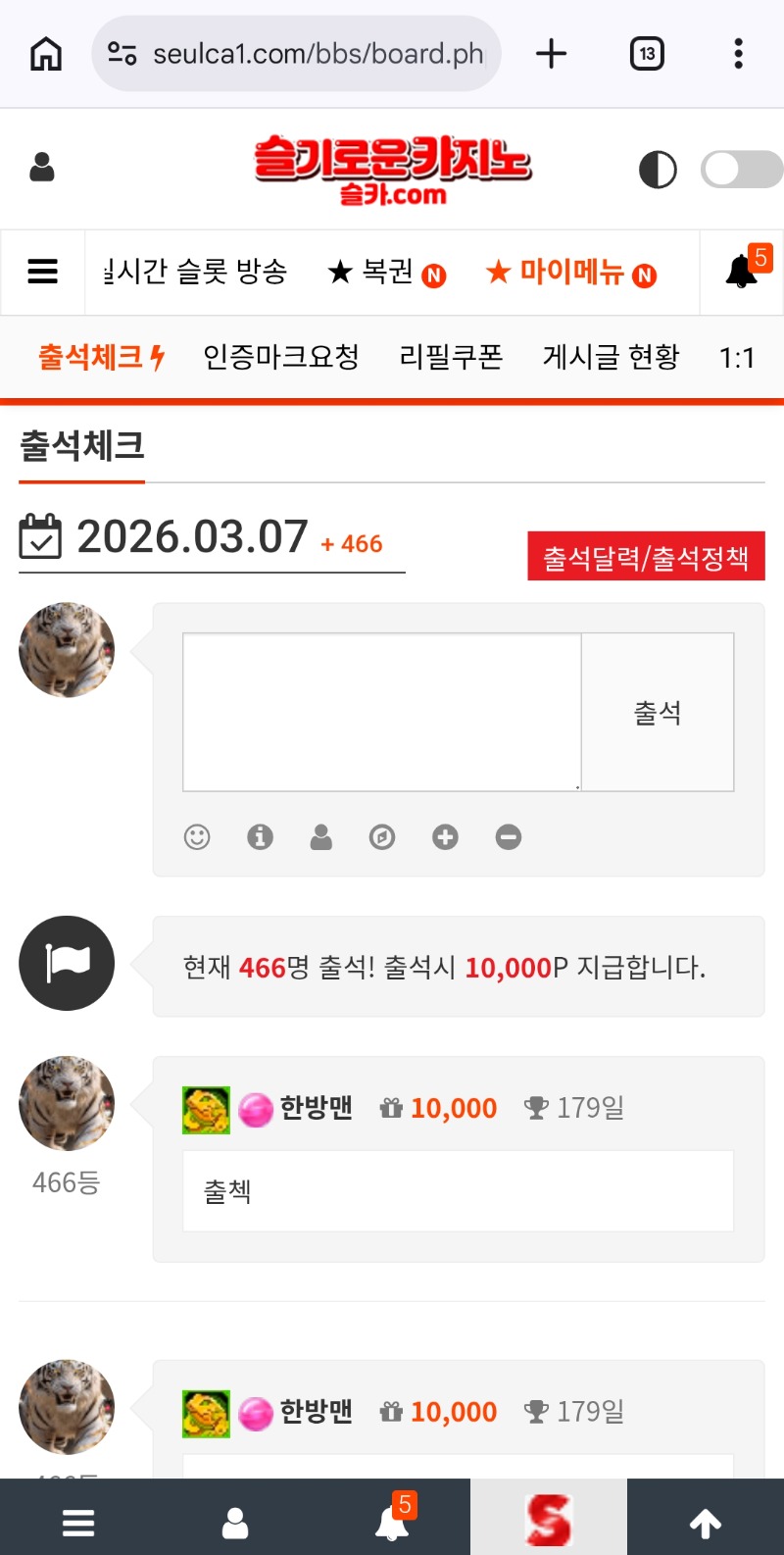 출첵 한방맨 2 0 0 08:33:34 *기프티콘 바코드 노출 주의* <- 0 0 https://seulca1.com/bbs/board.php?bo_table=free&wr_id=3654478 Author 2 0 Lv.12 한방맨 12 16,912,492 (78%) 한방맨님 보유 포인트 : P 11,112 +5 03.07 요즘되는게 +4 03.07 오늘하루도 +2 03.07 출첵 03.06 불금 +4 03.06 맛저들하시고