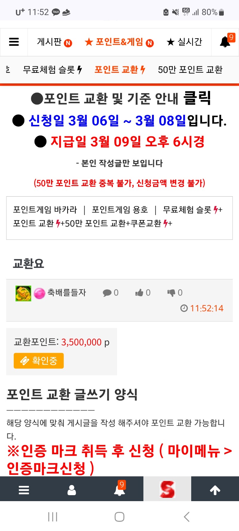 350만포교 축배를들자 5 0 0 11:53:03 *기프티콘 바코드 노출 주의* <- 포교성공 0 0 https://seulca1.com/bbs/board.php?bo_table=free&wr_id=3655245 Author 2 0 Lv.12 축배를들자 12 15,450,538 (49%) 축배를들자님 보유 포인트 : P 206,619 +5 03.07 350만포교 03.07 [비밀글] 교환요 +4 03.07 맛점하세요 +12 03.07 뱅커 100백 마감가자 +16 03.07 묻고 떠블 플100백 가자ㅅㅅㅅ