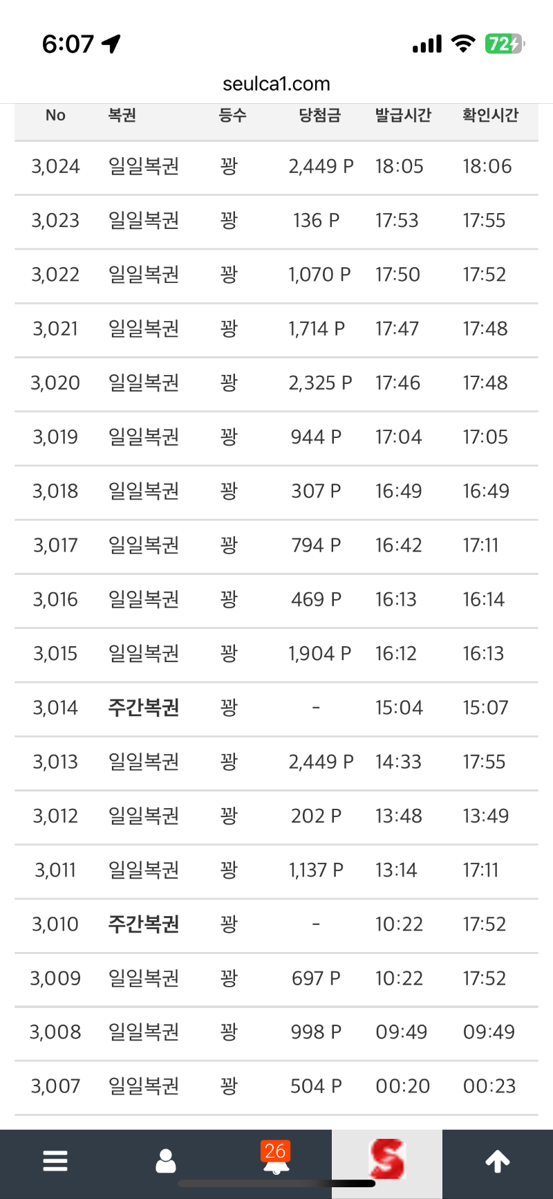 복권 몇개째 꽝인지ㅠ 한나 3 0 0 18:09:36 *기프티콘 바코드 노출 주의* <- 일복 자리 텅텅이길래 계속 사고 있는데 이게뭐람 0 0 https://seulca1.com/bbs/board.php?bo_table=free&wr_id=3656787 Author 1 0 Lv.11 한나 11 11,329,902 (44%) 한나님 보유 포인트 : P 13,455,099 +3 03.07 복권 몇개째 꽝인지ㅠ +1 03.06 [비밀글] 포교 +2 03.05 가족방배민 감사합니다~~ +1 03.05 [비밀글] 배민교환 +6 03.05 사자님꺼 구매일복 당첨!!