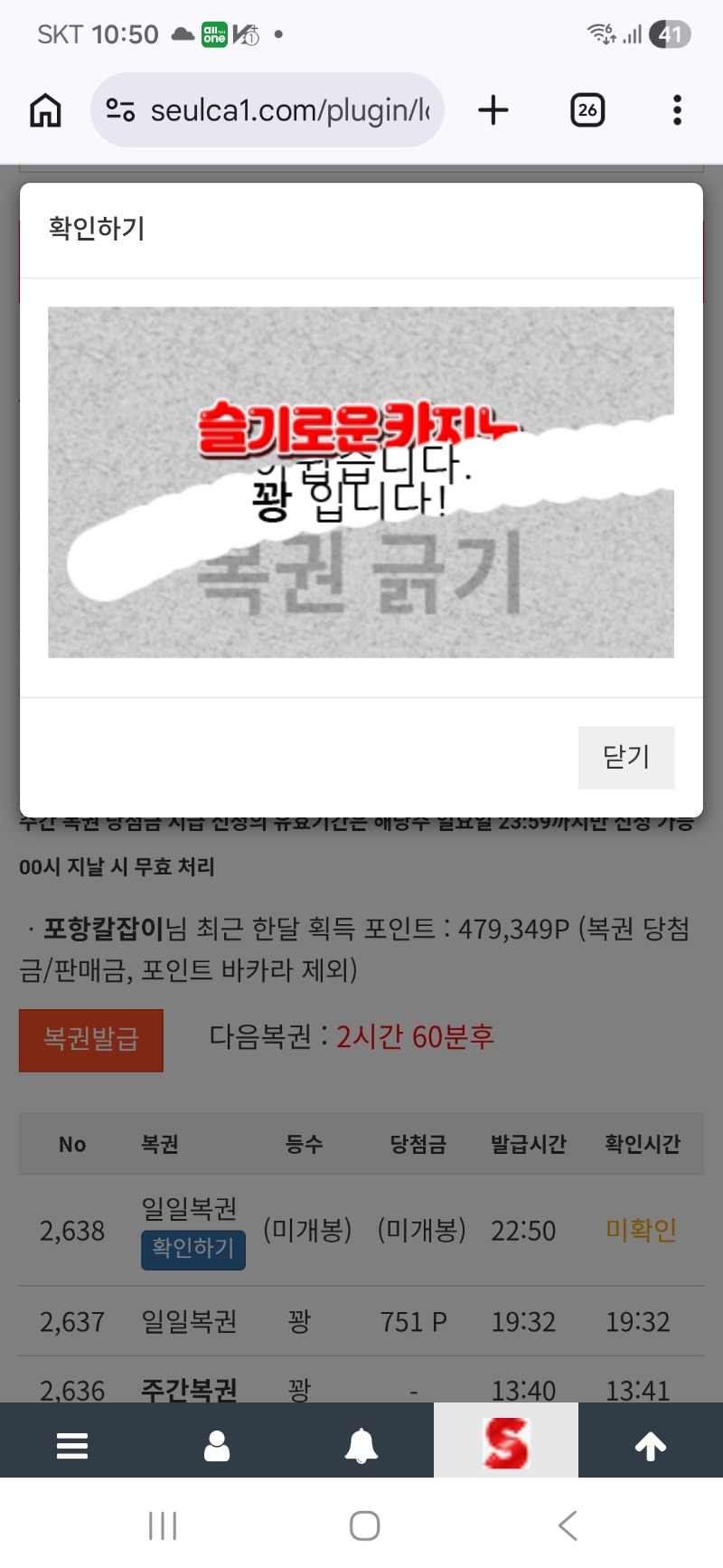 복권 쫌~ 포항칼잡이 0 0 0 03.07 22:51 *기프티콘 바코드 노출 주의* <- 0 0 https://seulca1.com/bbs/board.php?bo_table=free&wr_id=3657471 Author 3 1 Lv.12 포항칼잡이 12 15,163,580 (43%) 포항칼잡이님 보유 포인트 : P 1,521,289 03.07 복권 쫌~ +39 03.07 오2 2794배 +2 03.07 주복 역쉬나 ㅠ +8 03.07 드디어 주복이. 두둥~ +29 03.07 뱀피 966배