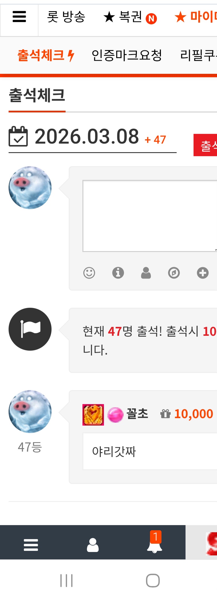 출첵완료 꼴초 0 0 0 00:03:03 *기프티콘 바코드 노출 주의* <- 0 0 https://seulca1.com/bbs/board.php?bo_table=free&wr_id=3657661 Author 0 0 Lv.13 꼴초 13 18,091,413 (1%) 꼴초님 보유 포인트 : P 3,490,063 03.08 출첵완료 03.07 오늘하루도 수고하셧네요 +4 03.07 우와자리엄청많은데 마지막복권도꽝 ㅠ 03.07 복권자리많다 마지막복권아~~ +2 03.07 이글로 변신! ㅋㅋㅋㅋ