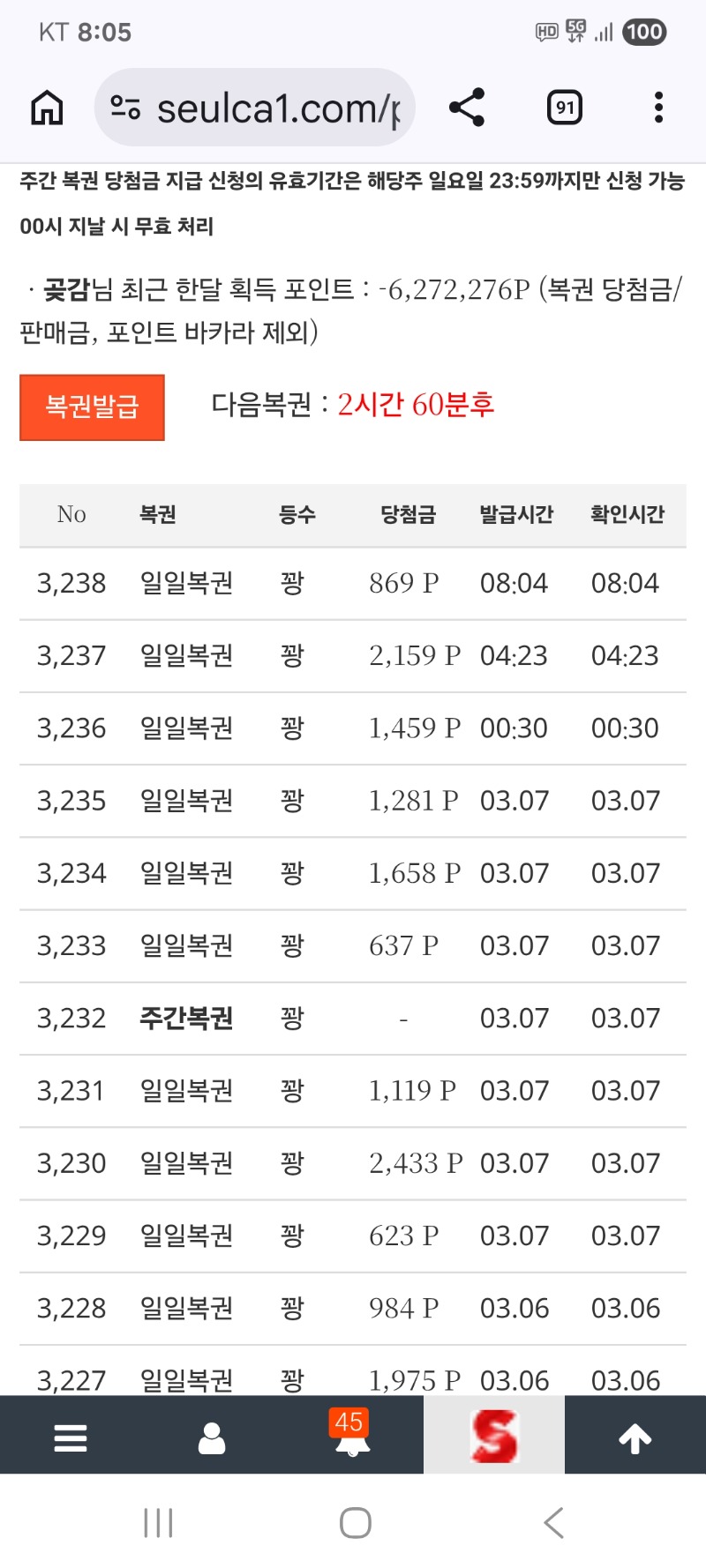 모닝 복권 꽝 이네요 곶감 0 0 0 08:05:41 http://잘가라 + 2 *기프티콘 바코드 노출 주의* <- 0 0 https://seulca1.com/bbs/board.php?bo_table=free&wr_id=3658381 Author 6 3 Lv.18 곶감 18 139,615,471 (66%) 곶감님 보유 포인트 : P 1,098,097 03.08 모닝 커피 한잔 합니다 +3 03.08 아침식사 하세요 +3 03.08 굿모닝 입니다 03.08 모닝 복권 꽝 이네요 +6 03.08 다시 굿나잇 입니다