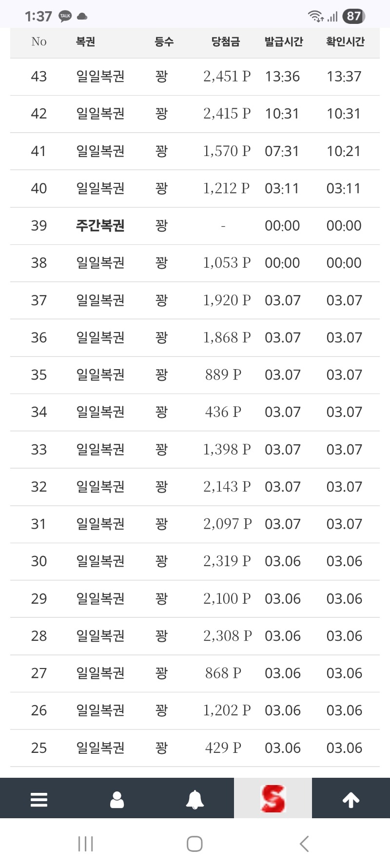 점점... 버져비터 6 0 0 13:39:08 *기프티콘 바코드 노출 주의* <- 복권 당첨보다는 꽝 금액이라도 크기를 바라는 건 정상인가요? 2천포 받으니 기분이 좋은데... 이거 저만 그런가요? 0 0 https://seulca1.com/bbs/board.php?bo_table=free&wr_id=3660011 Author 0 0 Lv.5 버져비터 5 774,600 (62%) 버져비터님 보유 포인트 : P 186,373 +4 03.08 다음 주부턴 바뻐질 꺼 같아서 +6 03.08 점점... +6 03.08 다들 맛있는 점심 되세요 +8 03.08 다들 굿모닝입니다 +22 03.08 첫 포교 신청했습니다