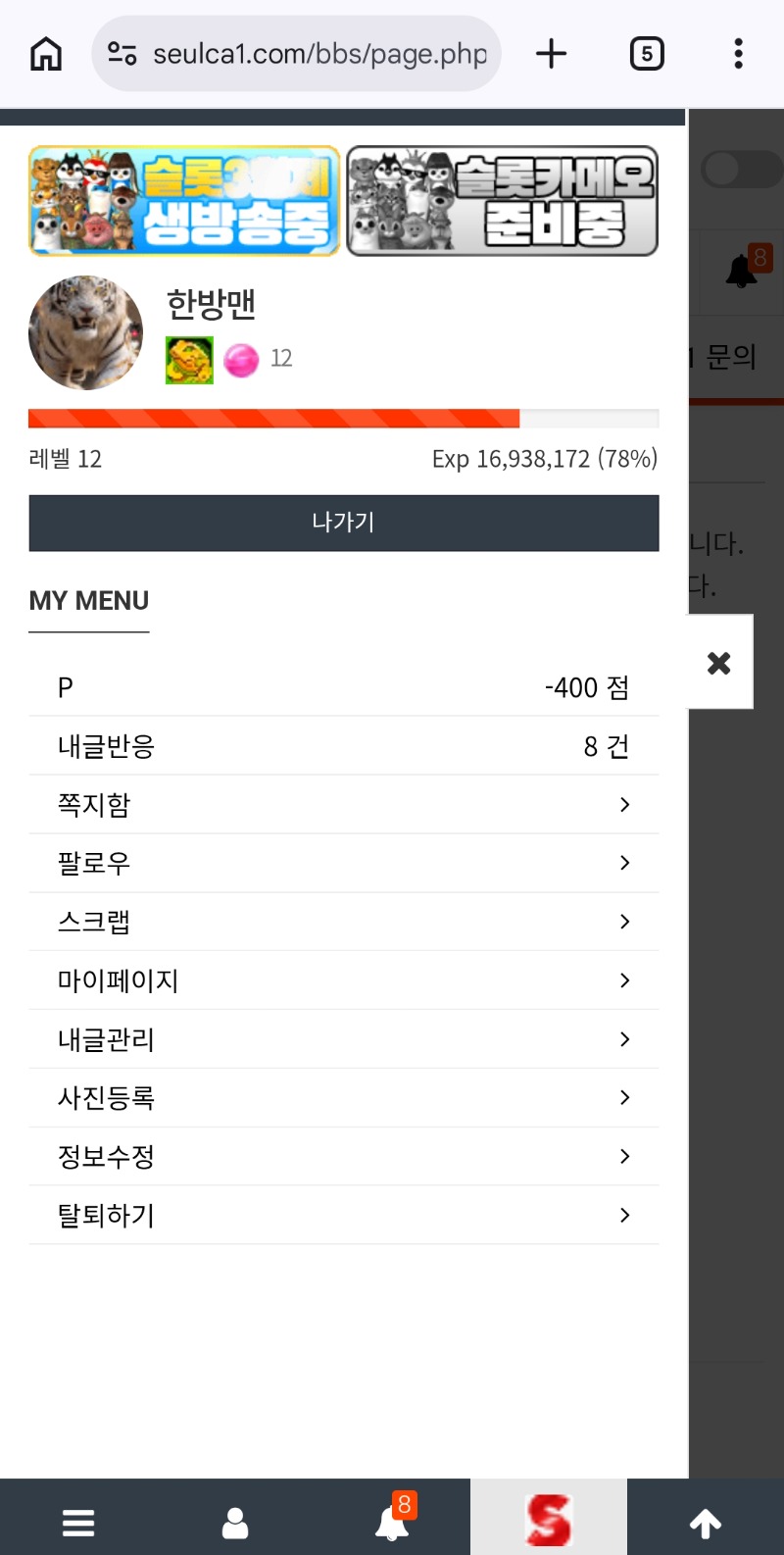 마이너스400포인트 ㅋㅋㅋ 한방맨 4 0 0 16:19:51 *기프티콘 바코드 노출 주의* <- 0 0 https://seulca1.com/bbs/board.php?bo_table=free&wr_id=3660724 Author 2 0 Lv.12 한방맨 12 16,940,172 (78%) 한방맨님 보유 포인트 : P 1,600 +4 03.08 마이너스400포인트 ㅋㅋㅋ 03.08 출첵 +1 03.07 오늘하루 마무리 +1 03.07 한일전 시청중 +3 03.07 맛저들하시고