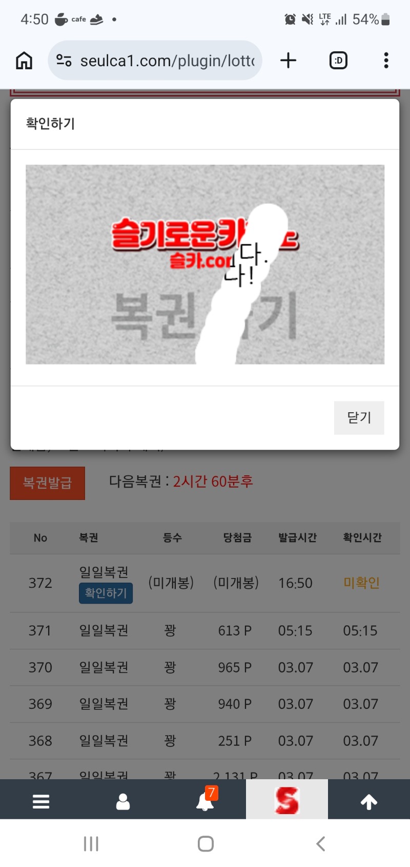 날씨가좋아 외출했다가...복첵.. 무조건한방가자 3 0 0 16:51:12 *기프티콘 바코드 노출 주의* <- 했으나! 0 0 https://seulca1.com/bbs/board.php?bo_table=free&wr_id=3660844 Author 0 0 Lv.8 무조건한방가자 8 3,005,192 (0%) 무조건한방가자님 보유 포인트 : P 8,841 +3 03.08 날씨가좋아 외출했다가...복첵.. +1 03.07 [비밀글] 배민교환 03.07 금일 마지막복권도 +28 03.07 시안 죽죽죽죽죽으로.. +2 03.07 저녁복첵..