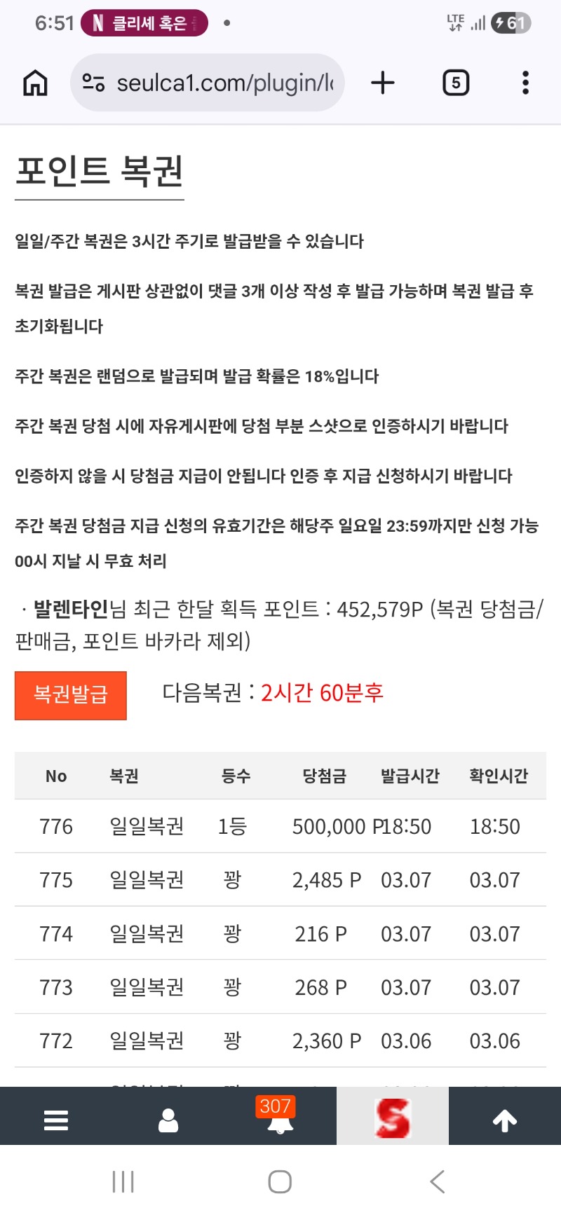 일복1등 스크린 발렌타인 10 0 0 03.08 18:55 *기프티콘 바코드 노출 주의* <- 0 0 https://seulca1.com/bbs/board.php?bo_table=free&wr_id=3661361 Author 0 0 Lv.9 발렌타인 9 5,712,643 (42%) 발렌타인님 보유 포인트 : P 737,434 +1 03.08 [비밀글] 배민 쿠폳교환 +10 03.08 일복1등 스크린 +10 03.08 우와 일복 1등 당첨 ^^ +4 03.07 쉬는 날이라도. 아침 식사는 먹어야죠^^ +3 03.07 좋은 아침입니다