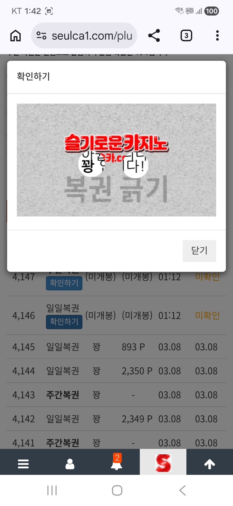 쌍복이.올꽝~~ 지킴이 4 0 0 01:43:25 *기프티콘 바코드 노출 주의* <- ㅠ 0 0 https://seulca1.com/bbs/board.php?bo_table=free&wr_id=3663091 Author 10 5 Lv.18 지킴이 18 154,158,694 (90%) 지킴이님 보유 포인트 : P 2,992,988 03.09 점심복권은..꽝데스 +2 03.09 맛점 하세요 ~~ +4 03.09 모닝복권은.. 꽝 +4 03.09 굿모닝입니다 +4 03.09 쌍복이.올꽝~~