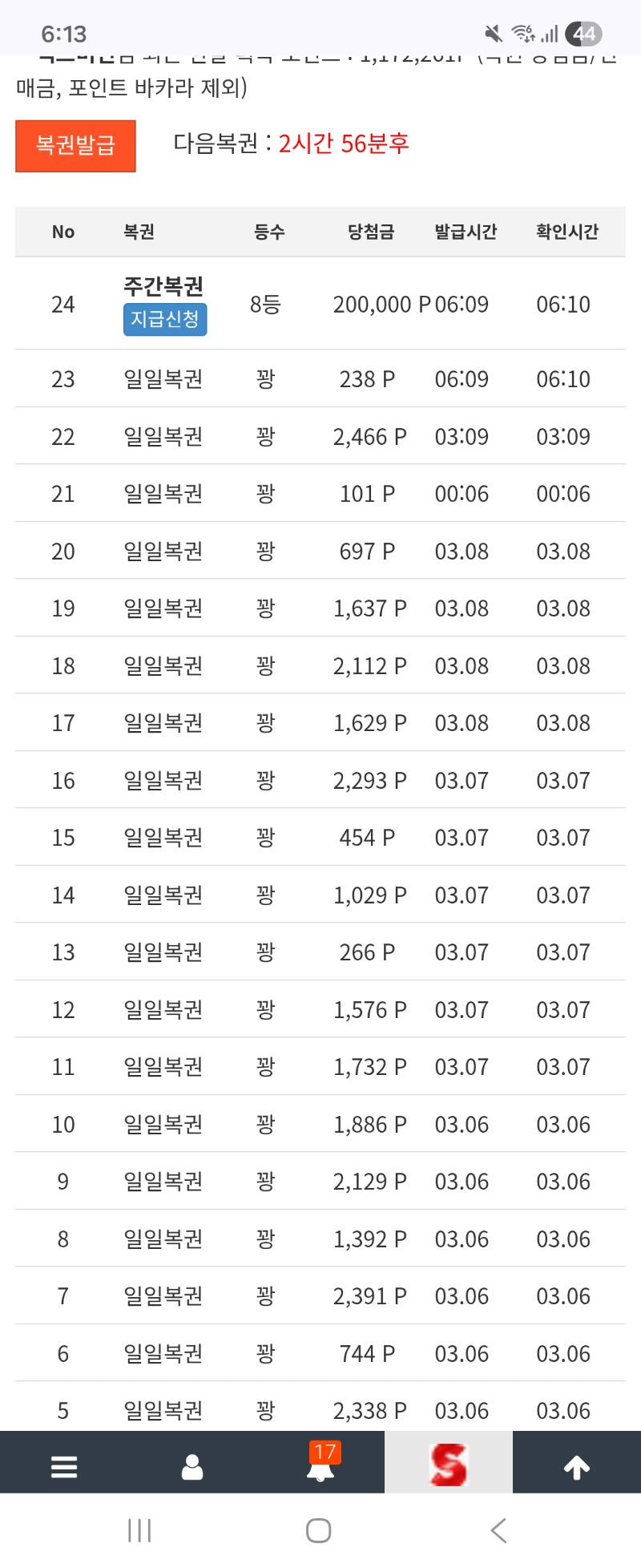 주간복권8등 맥스머신 6 0 0 06:14:51 *기프티콘 바코드 노출 주의* <- 기분좋은시작이네요ㅎ 로또복권도당첨좀되주겠니ㅋ 0 0 https://seulca1.com/bbs/board.php?bo_table=free&wr_id=3663398 Author 0 0 Lv.4 맥스머신 4 216,129 (38%) 맥스머신님 보유 포인트 : P 1,209,974 +1 03.09 6랩에길은 멀고도 험한.. +6 03.09 주간복권8등 +5 03.09 좋은아침입니다 +1 03.09 출석 +3 03.07 좋은아침