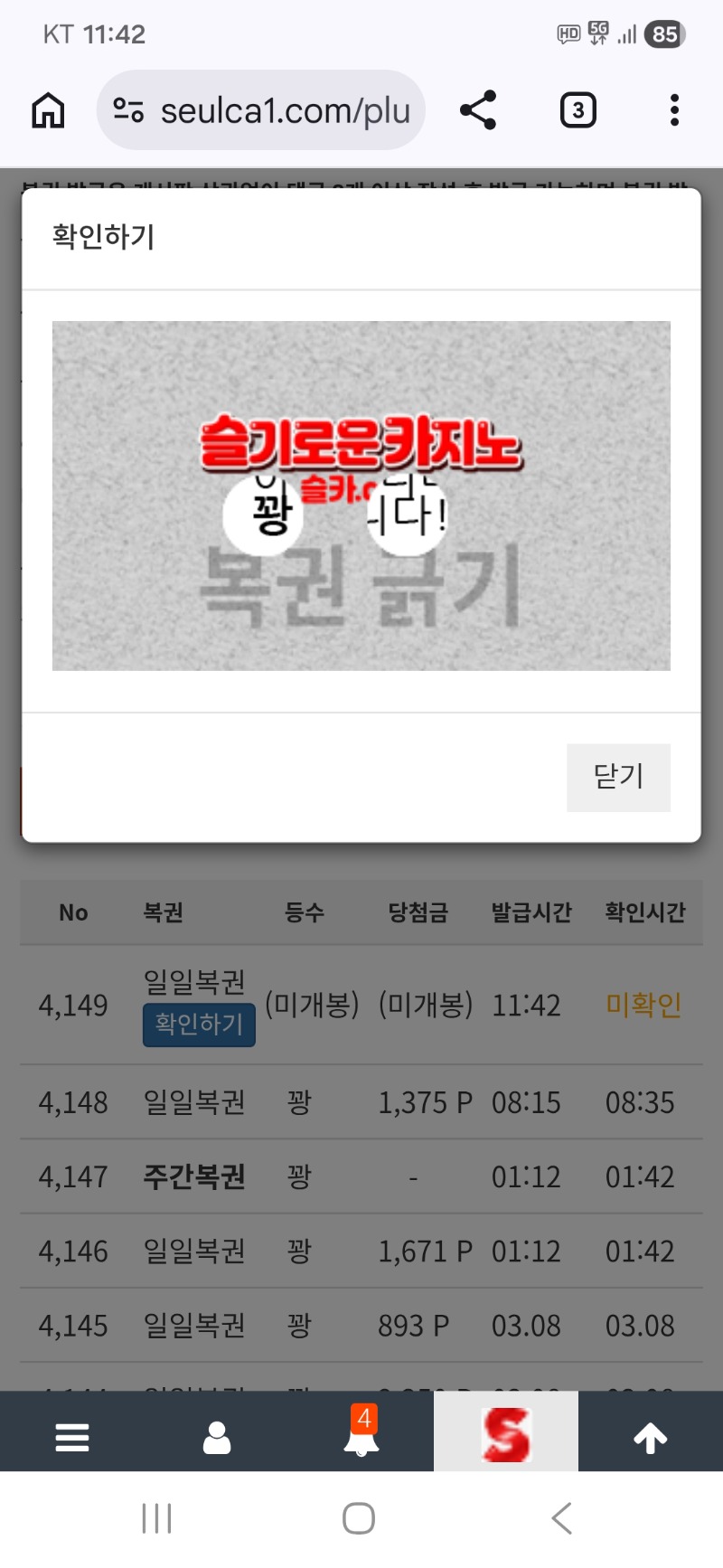 점심복권은..꽝데스 지킴이 0 0 0 11:50:13 *기프티콘 바코드 노출 주의* <- 줄때 됐는데 ㅠ 0 0 https://seulca1.com/bbs/board.php?bo_table=free&wr_id=3664331 Author 10 5 Lv.18 지킴이 18 154,158,694 (90%) 지킴이님 보유 포인트 : P 2,992,988 03.09 점심복권은..꽝데스 +2 03.09 맛점 하세요 ~~ +4 03.09 모닝복권은.. 꽝 +4 03.09 굿모닝입니다 +4 03.09 쌍복이.올꽝~~
