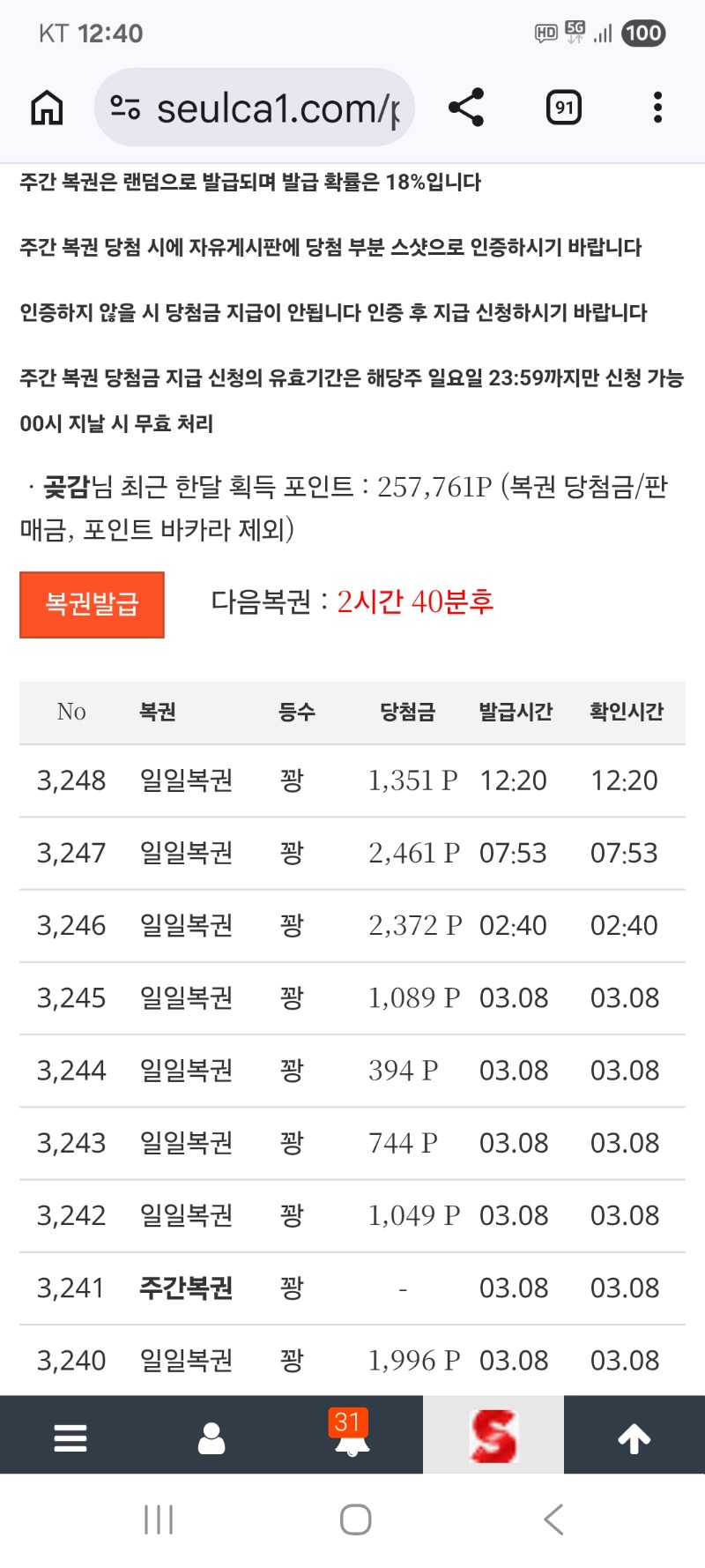 일복 계속 꽝 이네요 (현재까지 42꽝중)