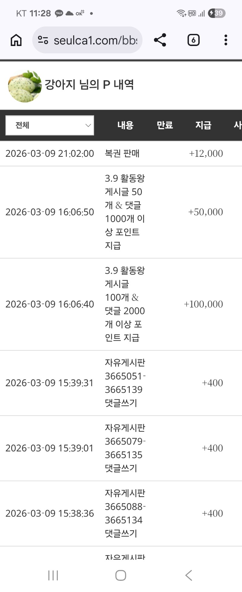 활동포 감사합니다 *^^* 강아지 2 0 0 03.09 23:29 *기프티콘 바코드 노출 주의* <- 0 0 https://seulca1.com/bbs/board.php?bo_table=free&wr_id=3666558 Author 0 0 Lv.14 강아지 14 24,061,340 (15%) 강아지님 보유 포인트 : P 732,769 +2 03.09 활동포 감사합니다 *^^* +23 03.09 뱀피 129배 +4 03.09 새로운 한주가 시작 되었네요 *^^ +32 03.09 락베가스 236배 +57 03.09 빅베스 플로트 마이보트 168배