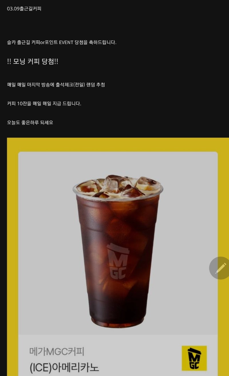 출근길 커피 어제꺼요~ 개봉구 3 0 0 02:28:15 *기프티콘 바코드 노출 주의* <- 0 0 https://seulca1.com/bbs/board.php?bo_table=free&wr_id=3666872 Author 6 2 Lv.13 개봉구 13 21,995,049 (79%) 개봉구님 보유 포인트 : P 216,414 +4 03.10 아테네천 459 +3 03.10 출근길 커피 어제꺼요~ +13 03.10 아테네천 1635 +7 03.10 아테네천 1635배 03.10 출석합니다!!!