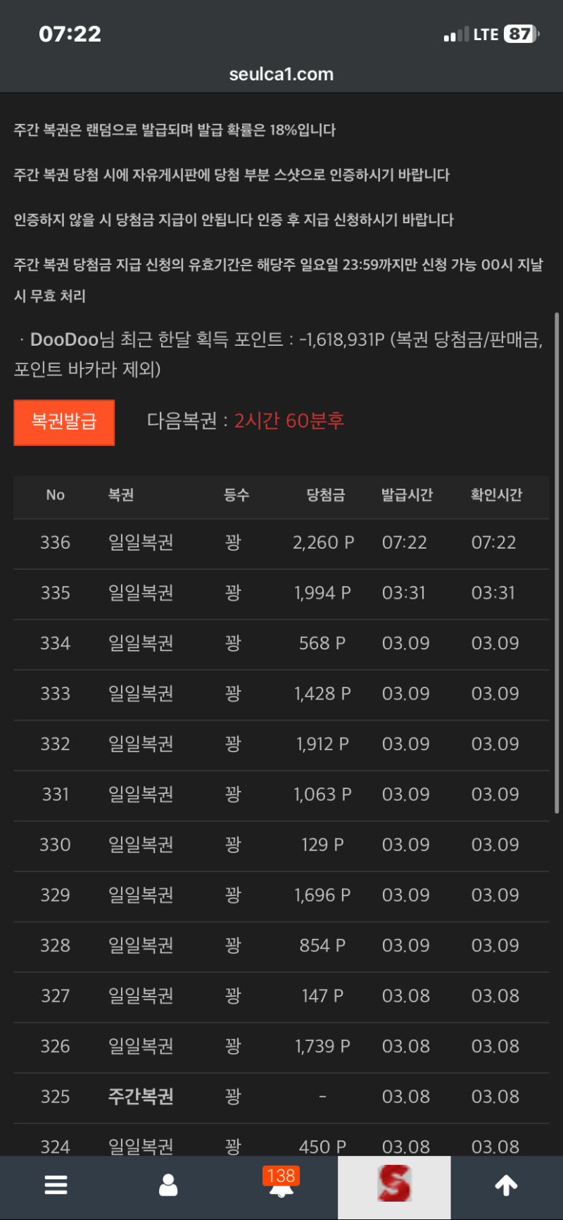 아침을 여는 상쾌한 모닝 “꽝” DooDoo 1 0 0 07:23:45 *기프티콘 바코드 노출 주의* <- 0 0 https://seulca1.com/bbs/board.php?bo_table=free&wr_id=3667187 Author 0 0 Lv.9 DooDoo 9 4,709,617 (17%) DooDoo님 보유 포인트 : P 3,753,835 +1 03.10 아침을 여는 상쾌한 모닝 “꽝” +1 03.09 오늘 마지막 복권도 “꽝!!” +1 03.09 토끼 근황 +8 03.09 영화 본 사람만 아는 007이 그냥 7이 될뻔한 순간 03.09 퇴근하고 싶다…